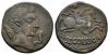 HISPANIA ANTIGUA. SEGOBRIGA. Augusto. As. A/ Cabeza a der., delante delfín, detrás palma. R/ Jinete lancero a der.; SEGOBRIGA. AR 9,55 g. 25 mm. I-2182; APRH-470a; ACIP-3240; CC-5137, mismo ejemplar. Pátina oscura. MBC-/MBC.