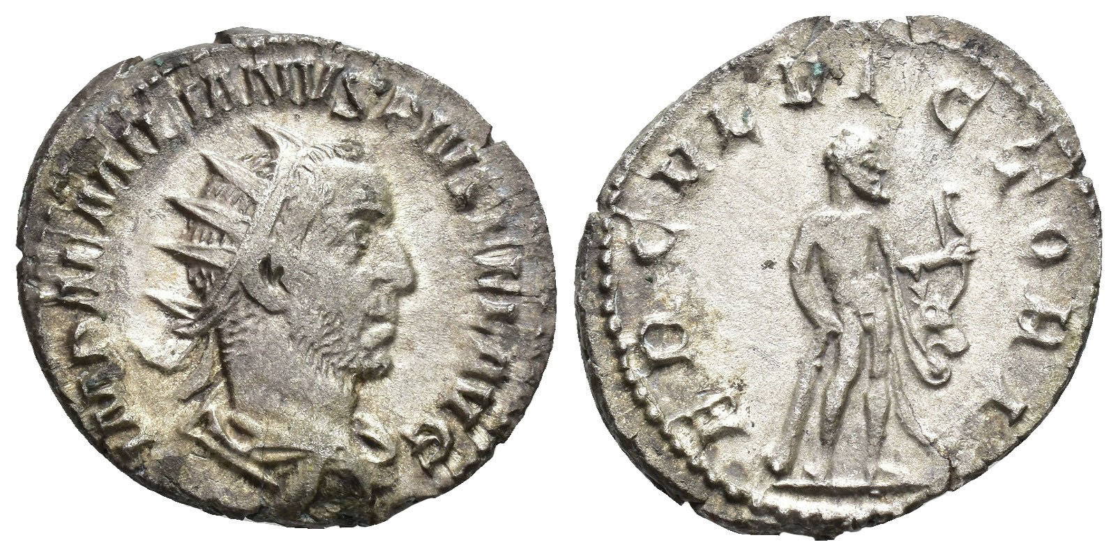 IMPERIO ROMANO. EMILIANO. Antoniniano. Roma (253). A/ Busto drapeado y acorazado a der.; IMP AEMILIANVS PIVS FEL AVG. R/ Hércules con arco y clava; HERCVL VICTORI. VE 3,91 g. 22,3 mm. RIC-3B. MBC. Escasa.