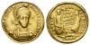 IMPERIO ROMANO. CONSTANCIO II. Sólido. Nicomedia (351-355). A/ Busto frontal con casco, coraza, escudo y lanza; FL IVL CONSTANTIVS PERP AVG. R/ Roma y Constantinopolis entronizadas sosteniendo entre ambas escudo con la ley. VOT/XXX/MVLT/XXXX; GLORIA REI PVBLICAE. -/-//SMNC. AU 4,26 g. 21,5 mm. RIC-74. Estuvo engarzada. BC+/MBC-.