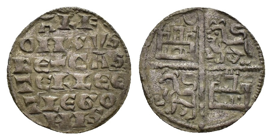 REINOS DE CASTILLA Y LEÓN. ALFONSO X. Dinero. Marca creciente. VE 0,84 g. 18 mm. III-238; BMM-368. Vellón rico. MBC.