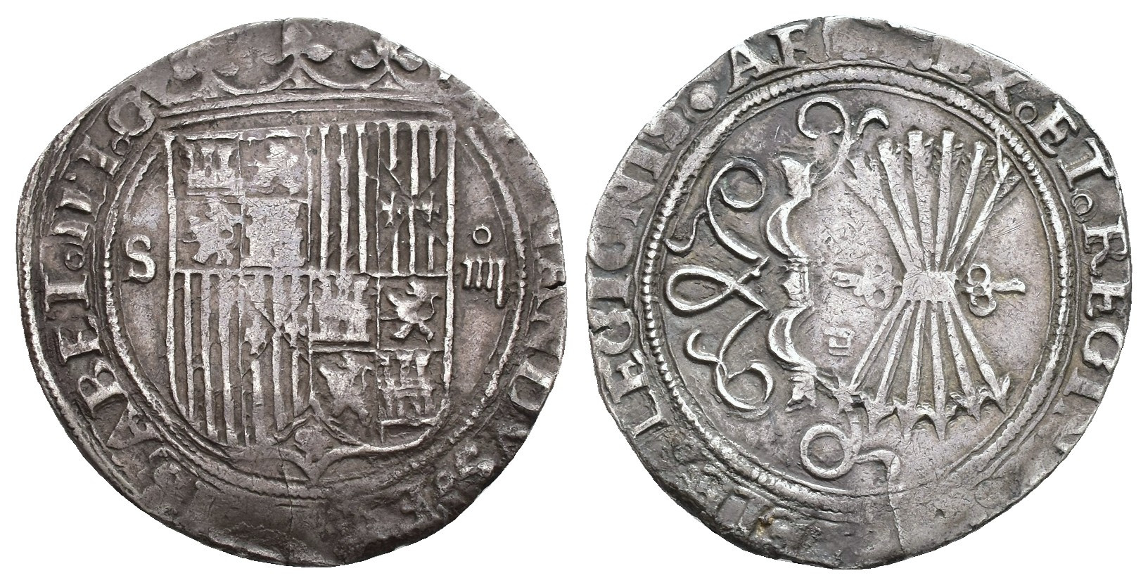 REYES CATÓLICOS. 4 reales. Sevilla. AR 13,45 g. 33,5 mm. AC-564. MBC-.