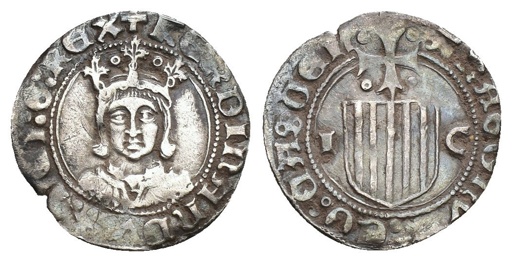 FERNANDO EL CATÓLICO. 1/2 real (1484). Zaragoza. I-C. AR 1,7 g. 21 mm. AC-52. Cospel abierto. MBC.