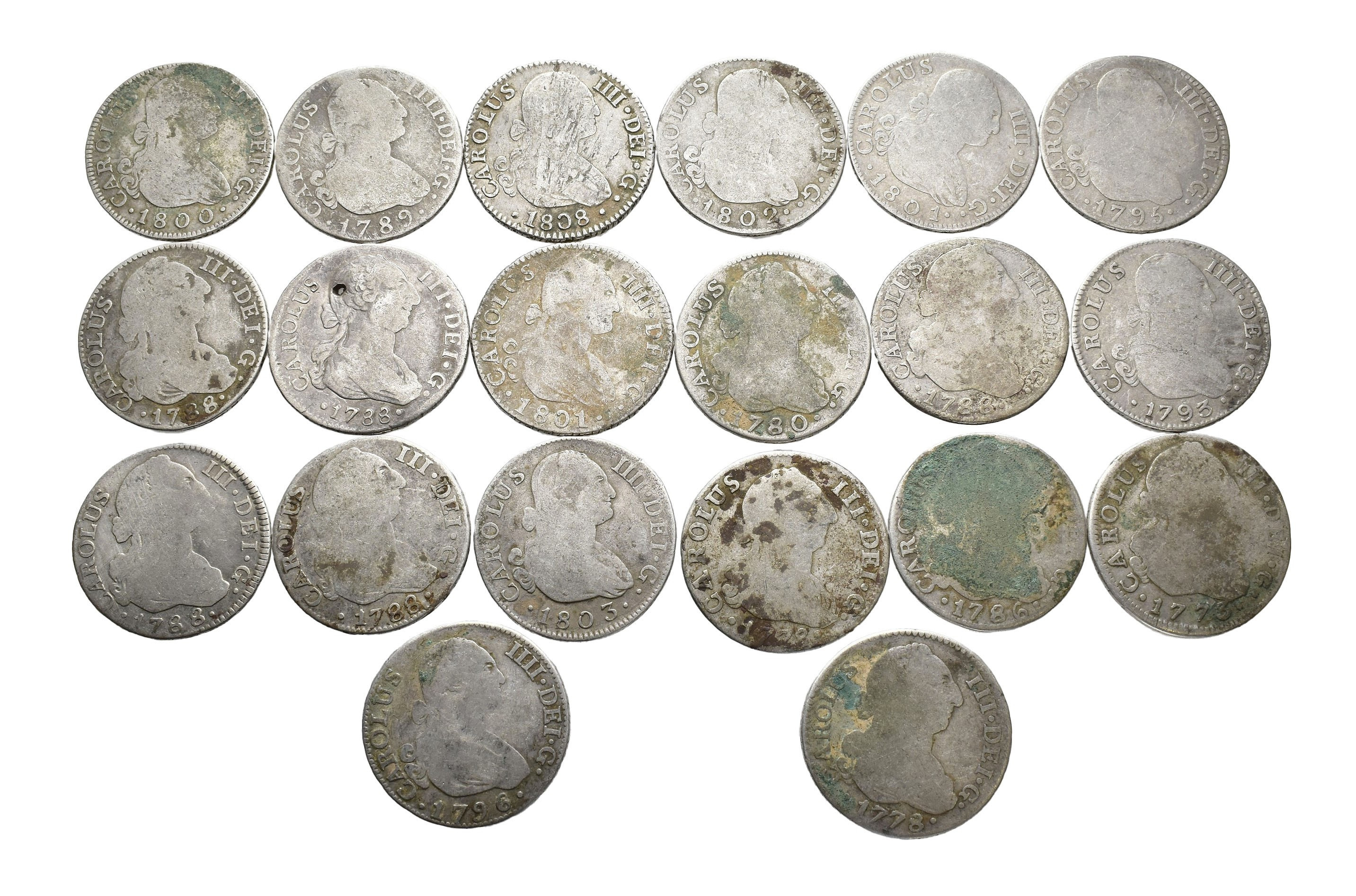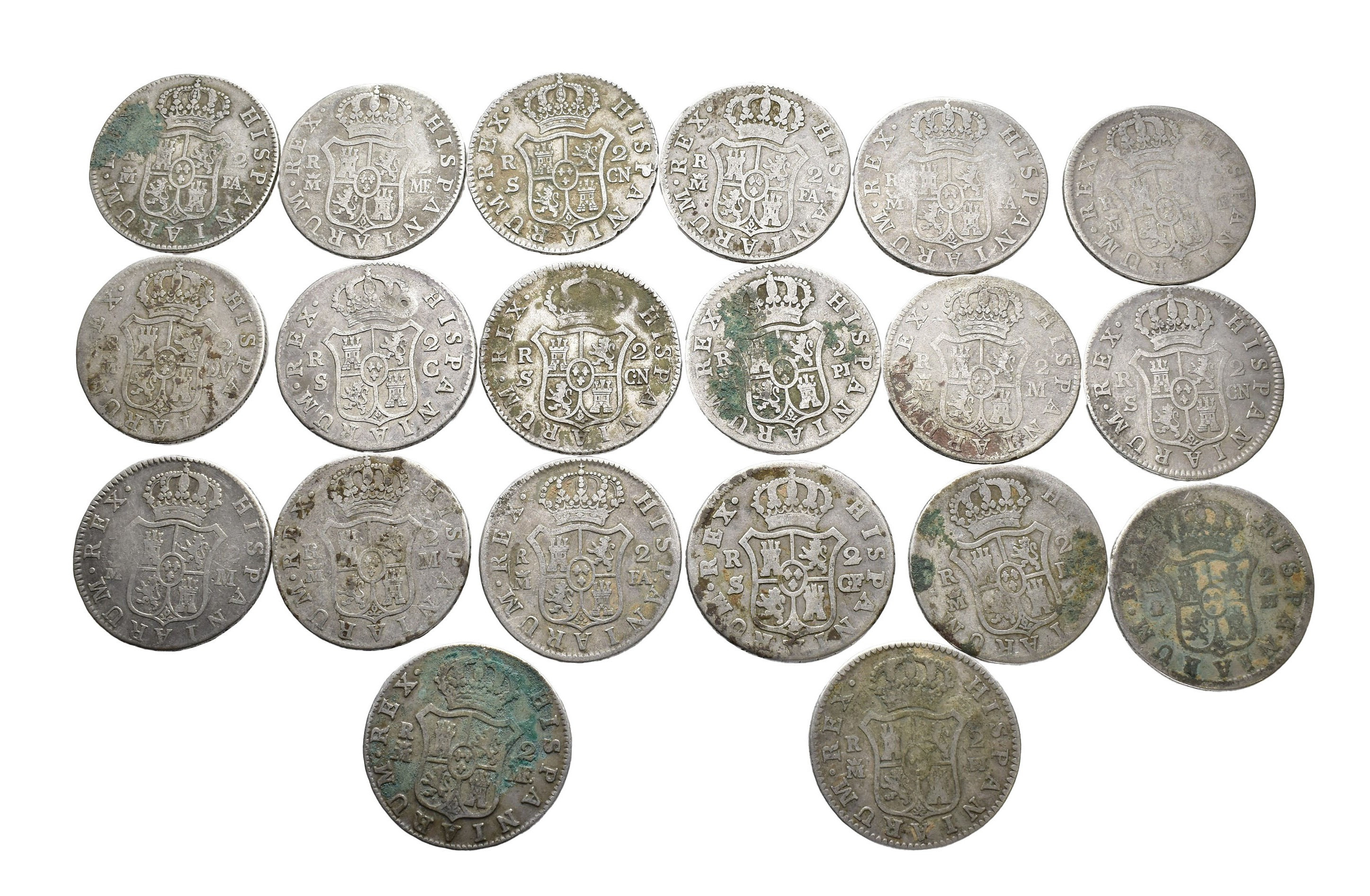 CARLOS III. Lote de 20 piezas de 2 reales. RC-/BC+.