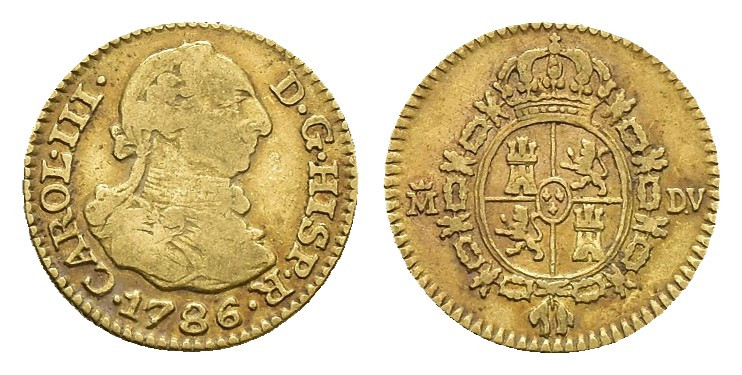 CARLOS III. 1/2 escudo. 1786. Madrid. DV. AU 1,71 g. 14,2 mm. VI-1065; AC-1280. MBC-/MBC.