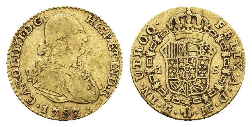 CARLOS IV. Escudo. 1797. Madrid. MF. AU 3,35 g. 17 mm. VI-911; AC-1115. MBC-.
