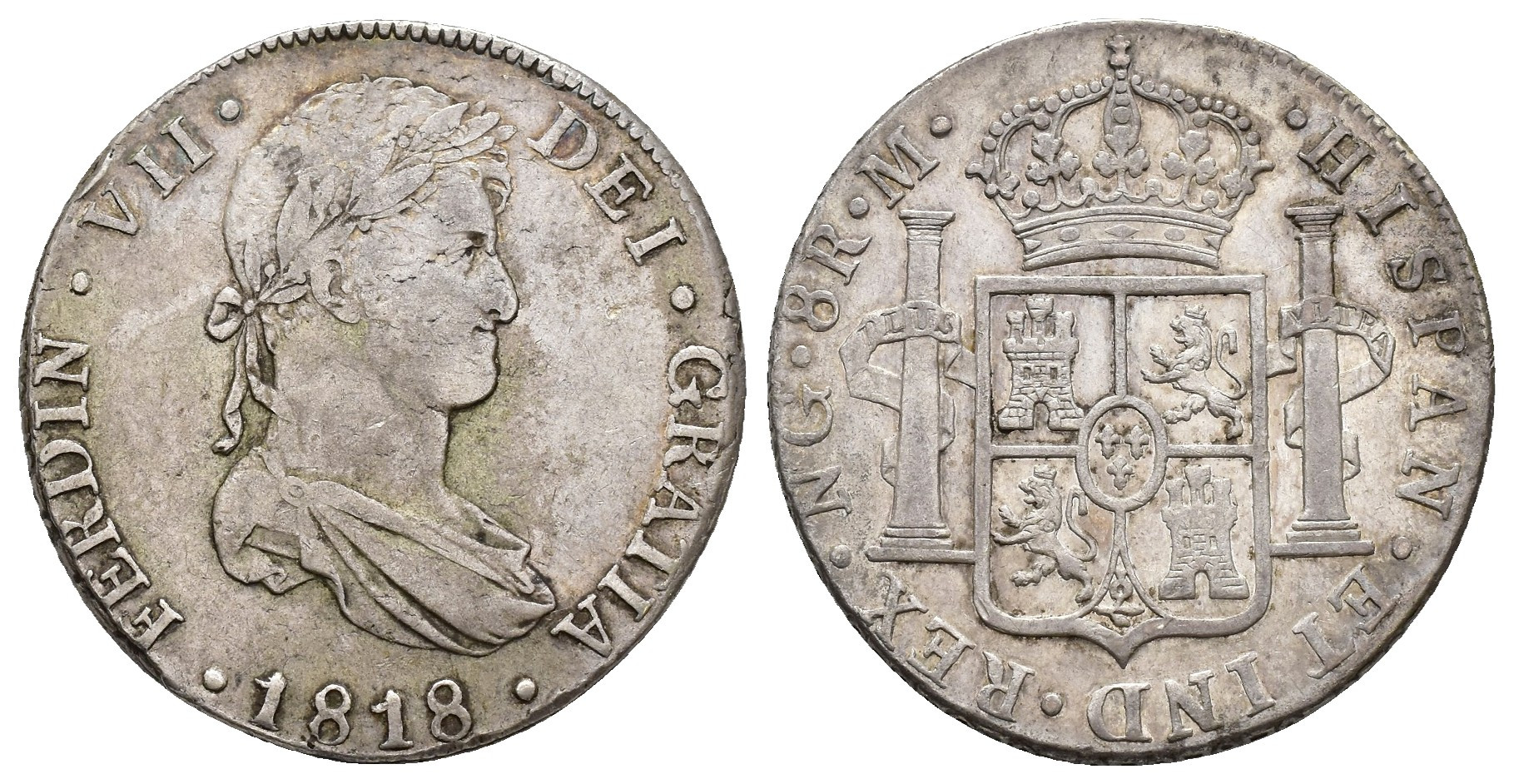 FERNANDO VII. 8 reales. 1818. Guatemala. M. AR 26,93 g. 37,9 mm. VI-1030; AC-1233. MBC/MBC+.