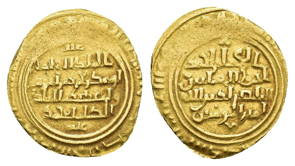 MUNDO ISLÁMICO. AYUBÍES. Al-Mansur Muhammad. Dinar. 595-6 H. AU 4 g. 20,3 mm. Kazan-646-648. Vanos. MBC.