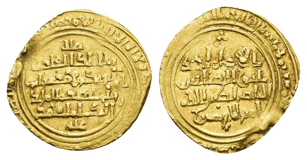 MUNDO ISLÁMICO. AYUBÍES. Al-Mansur Muhammad. Dinar. 595-6 H. AU 3,49 g. 19,5 mm. Kazan-646-648. Golpe en canto. MBC.