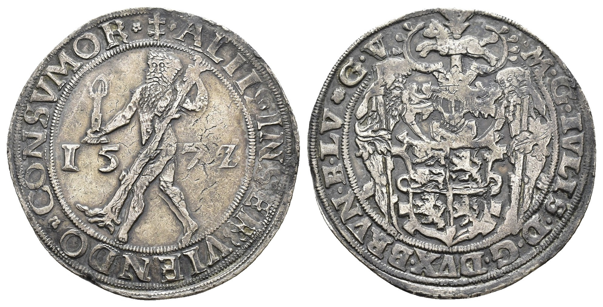 MONEDA EXTRANJERA. ALEMANIA Y ESTADOS ALEMANES. BRAUNSCHWEIG. Lichttaler. 1572. AR 28,71 g. 40,2 mm. Dav.-9060. Ligera plata agria y pequeñas marcas. MBC.
