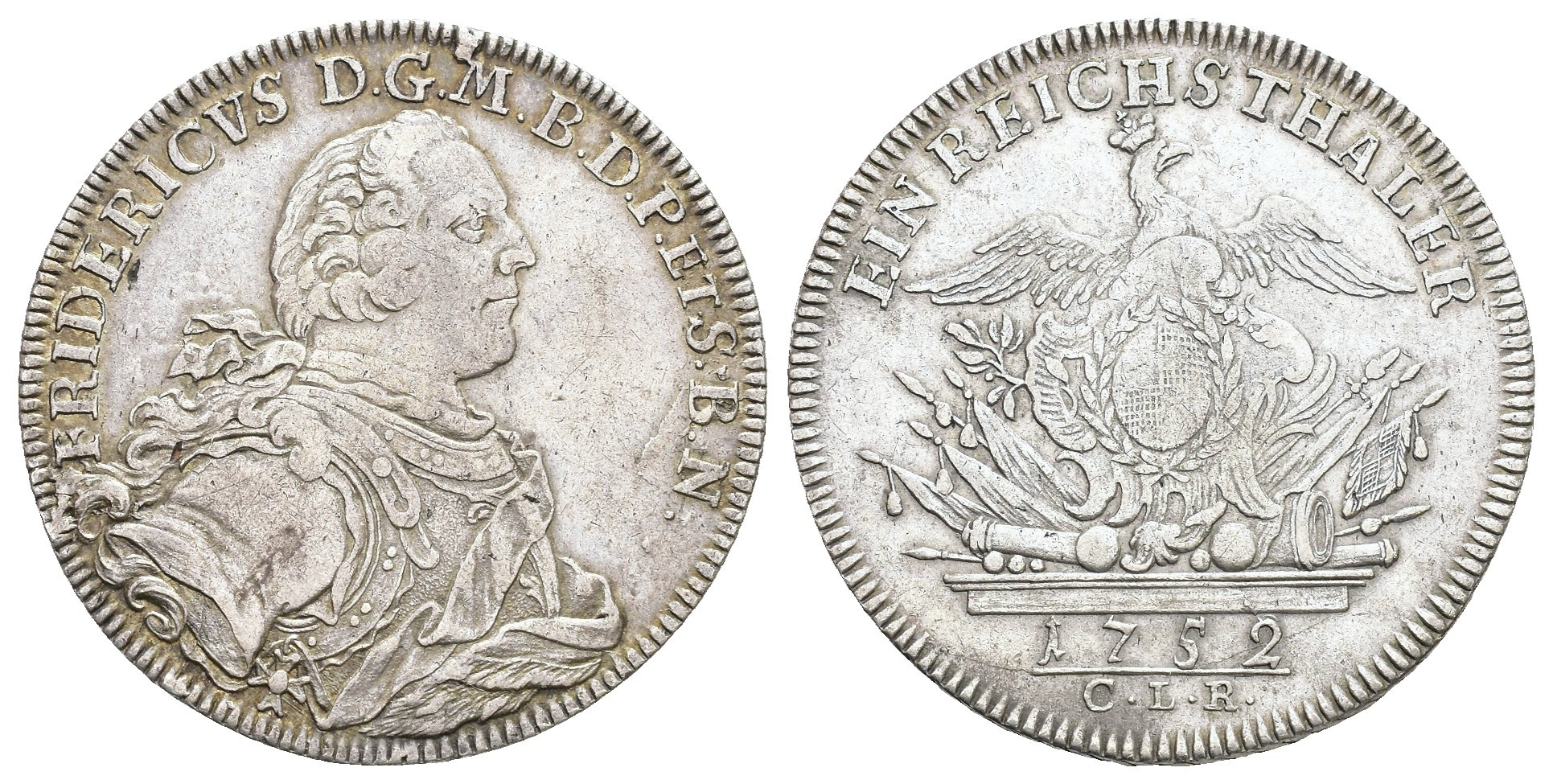 MONEDA EXTRANJERA. ALEMANIA Y ESTADOS ALEMANES. BRANDEBURGO-BAYREUTH. Federico. Tálero. 1752. AR 19,17 g. 39,4 mm. Dav.-2032. MBC.