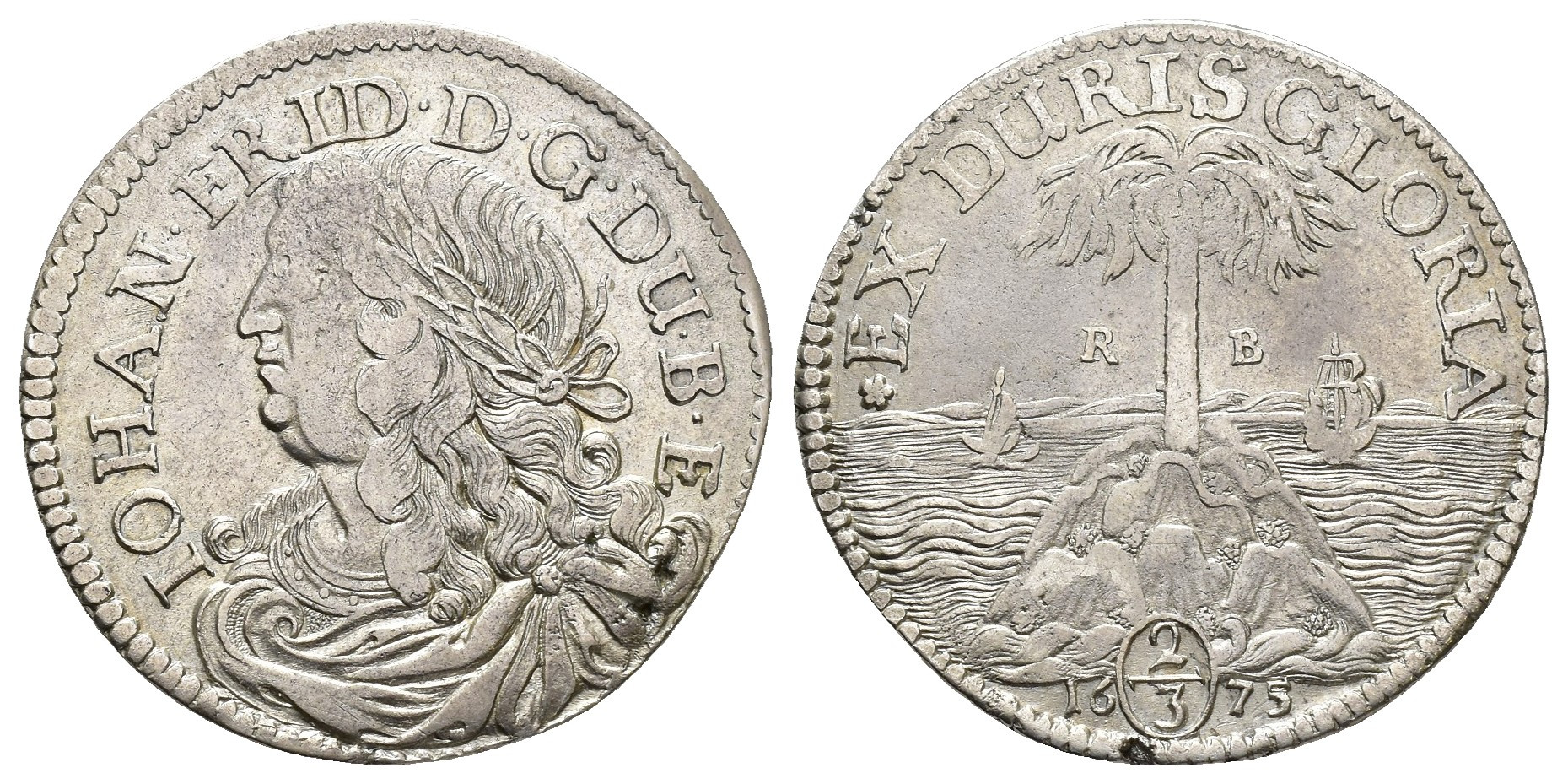 MONEDA EXTRANJERA. ALEMANIA Y ESTADOS ALEMANES. BRAUNSCHWEIG-CALENBERG-HANNOVER. Juan Federico. RB. Gulden. 1675. AR 16,18 g. 37,7 mm. Dav-.380. Pequeñas grietas. MBC.