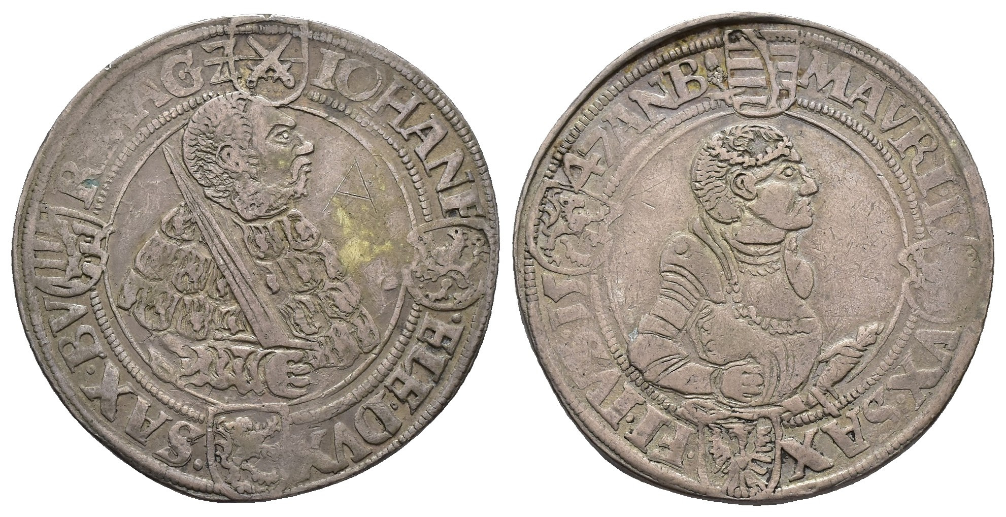 MONEDA EXTRANJERA. ALEMANIA Y ESTADOS ALEMANES. SAJONIA. Juan Federico y Mauricio. Tálero. 1547. AR 28,82 g. 40,3 mm. Dav.-9730. Grafito y pequeñas marcas. MBC-.