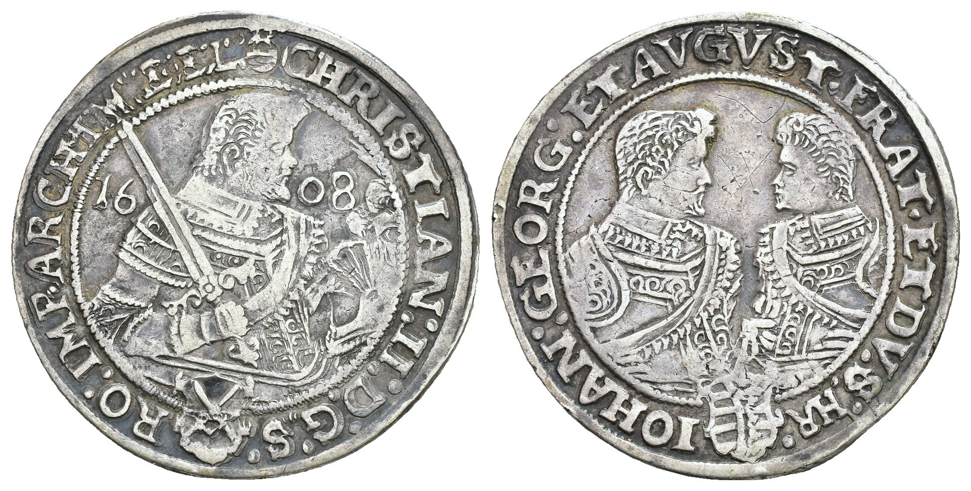 MONEDA EXTRANJERA. ALEMANIA Y ESTADOS ALEMANES. SAJONIA. Cristian II Augusto y Juan Jorge. Tálero. 1608. Galvano antiguo plateado. 28,81 g. 40,1 mm. Dav.-7566. MBC-/MBC.