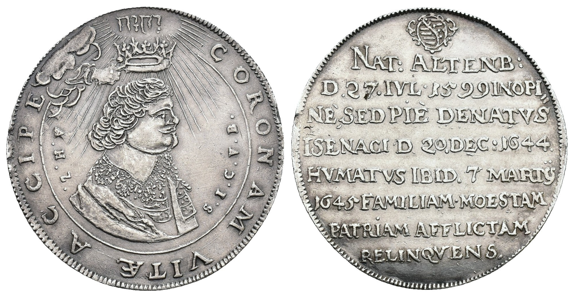 MONEDA EXTRANJERA. ALEMANIA Y ESTADOS ALEMANES. SAJONIA-EISENACH. Alberto II de Weimar. Reichstaler. 1645. AR 24,66 g. 41,6 mm. Dav.-7415. Golpe en canto. MBC+.