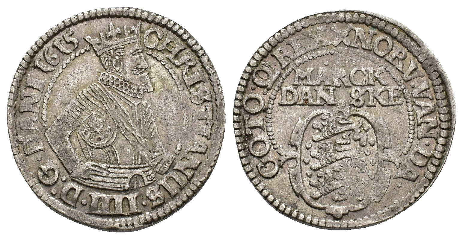 MONEDA EXTRANJERA. DINAMARCA. Cristian IV. Marco. 1615. AR 8,53 g. 31,7 mm. KM-52. MBC.