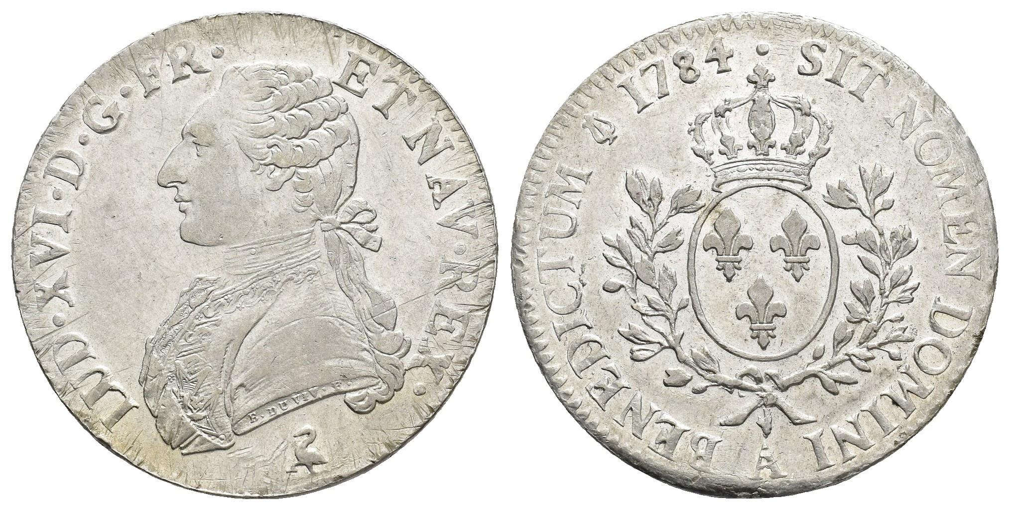 MONEDA EXTRANJERA. FRANCIA. Luis XVI. Escudo. 1784. A. AR 29,02 g. 41,5 mm. KM-564.1. Rayas de ajuste. R.B.O. EBC-.