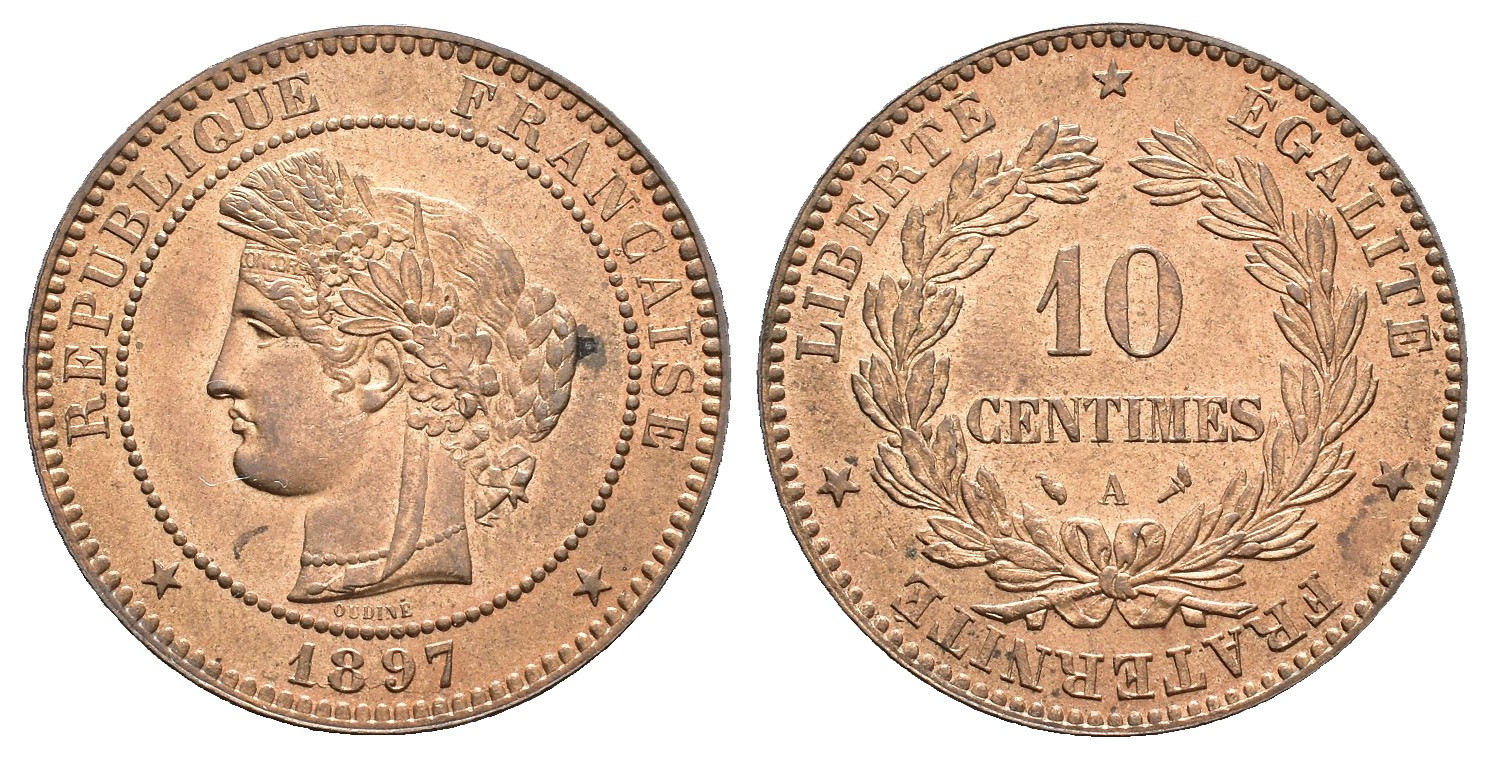 MONEDA EXTRANJERA. FRANCIA. República. A. 10 centimes. 1897. CU 10,02 g. 30,1 mm. KM-815.1. Manchita. B.O. SC.