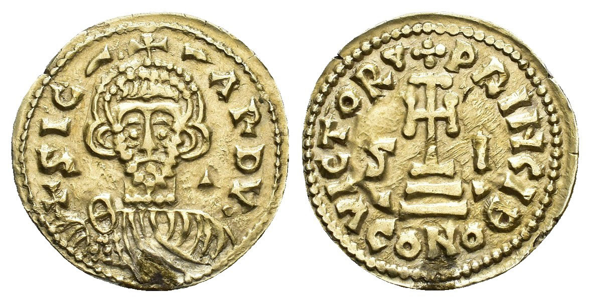 MONEDA EXTRANJERA. ITALIA Y ESTADOS ITALIANOS. REINO LOMBARDO. Sicardo (832-839). Benevento. Sólido. AU 3,65 g. 23,8 mm. Soldadura a las 6 en anv. y rev. MBC+. Muy escasa.