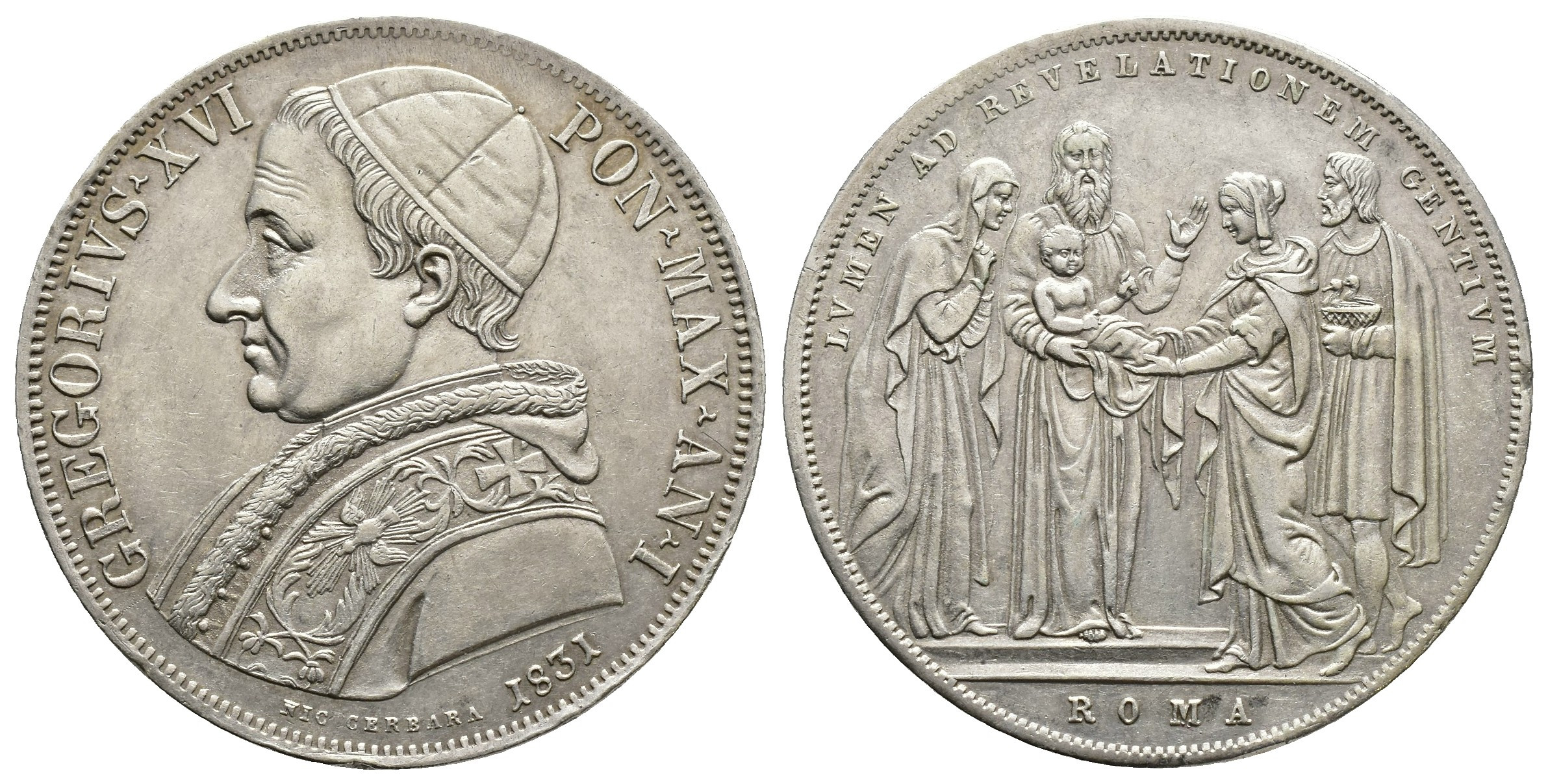 MONEDA EXTRANJERA. ITALIA Y ESTADOS ITALIANOS. ESTADOS PAPALES Y VATICANO. Gregorio XVI. Escudo. 1831. AR 26,45 g. 37,5 mm. KM-135.1. MBC+/EBC-.