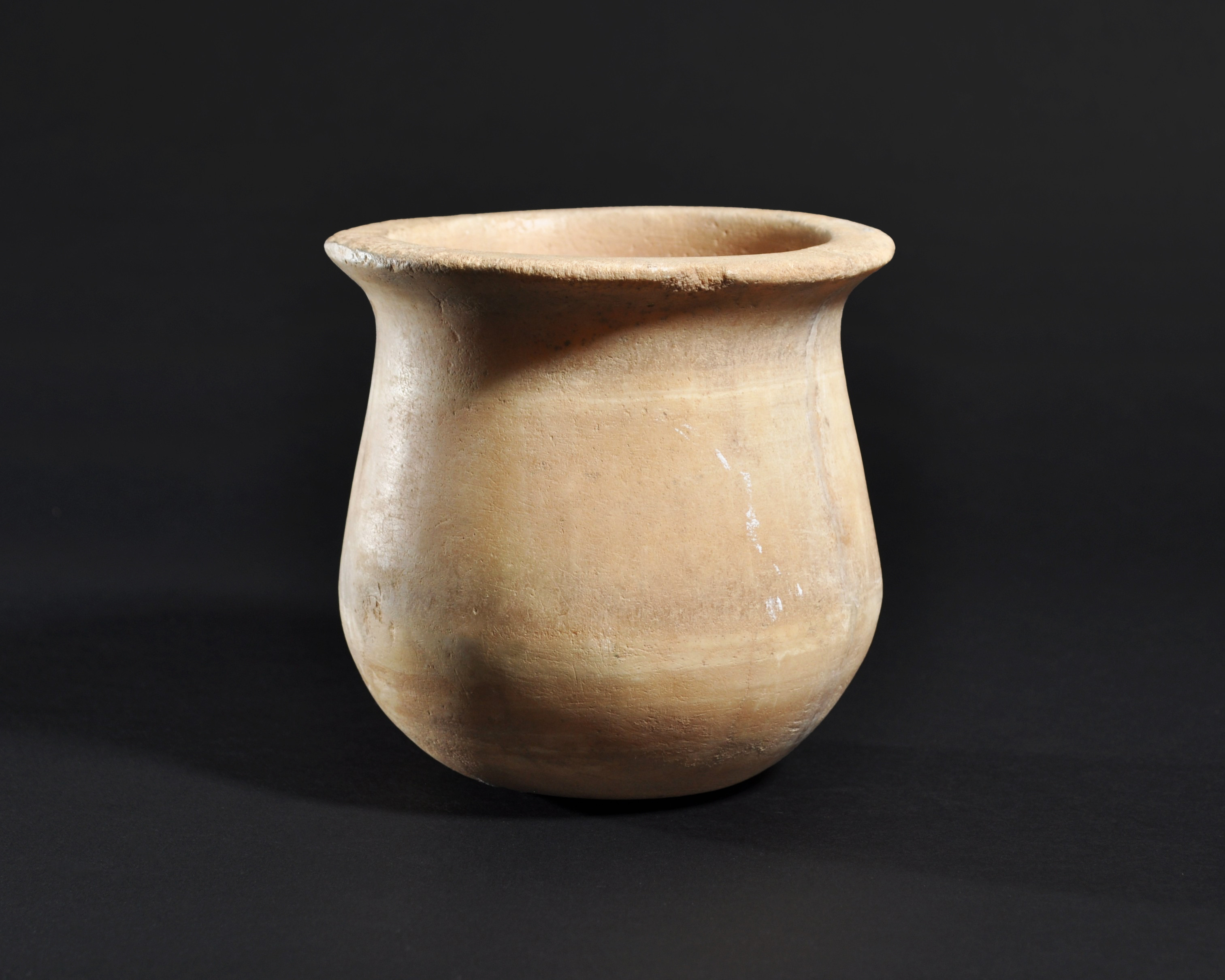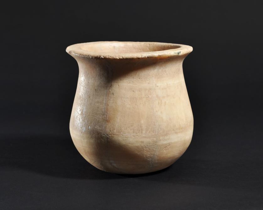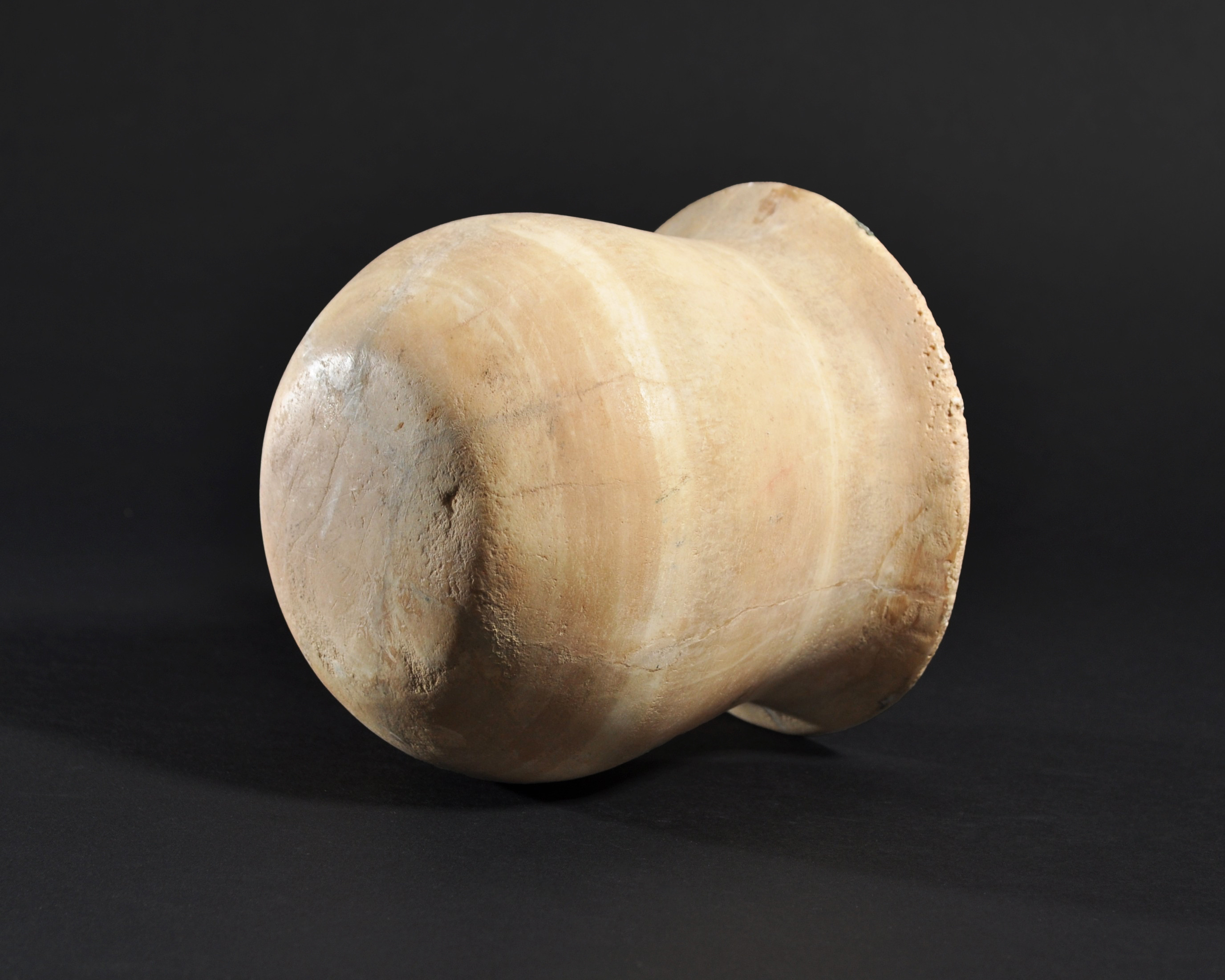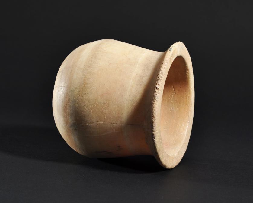 ARQUEOLOGÍA. PRÓXIMO ORIENTE. Bactria. Vaso (I milenio a.C.). Alabastro. Altura 12,4 cm. Diámetro 12,6 cm. Fragmentado y restaurado.