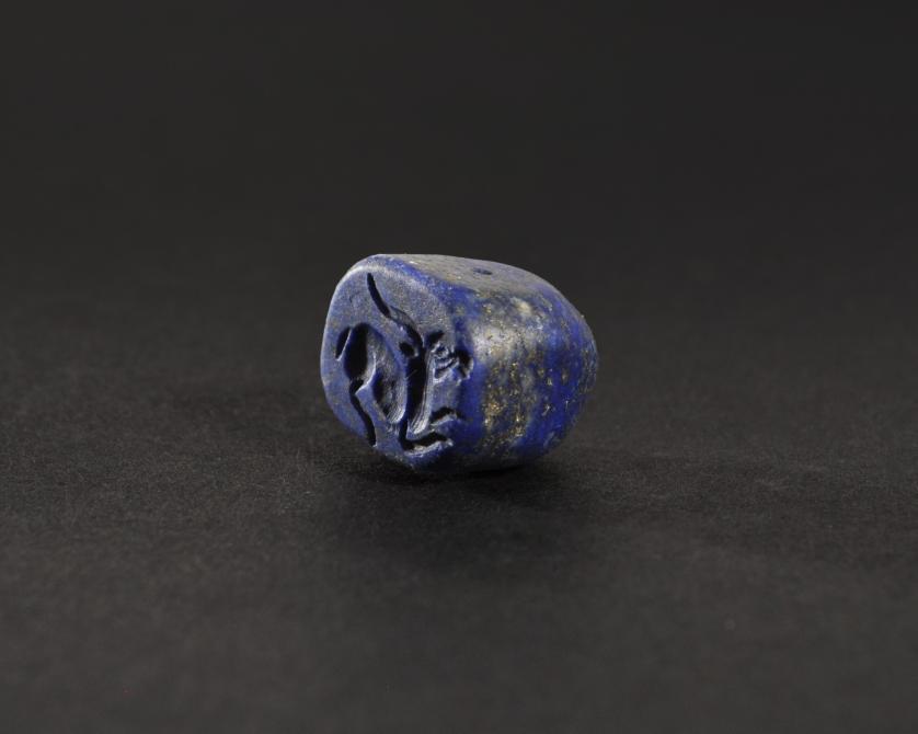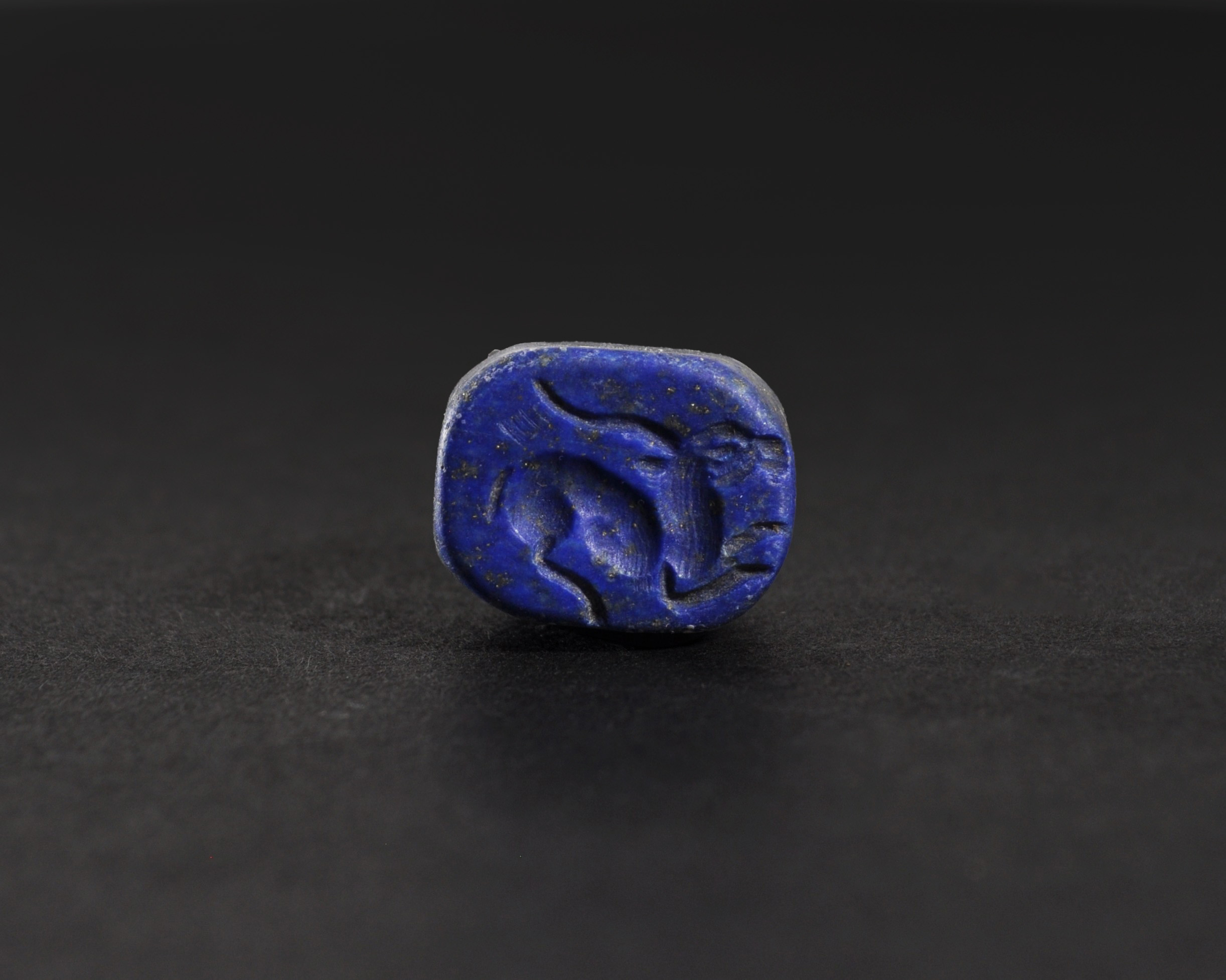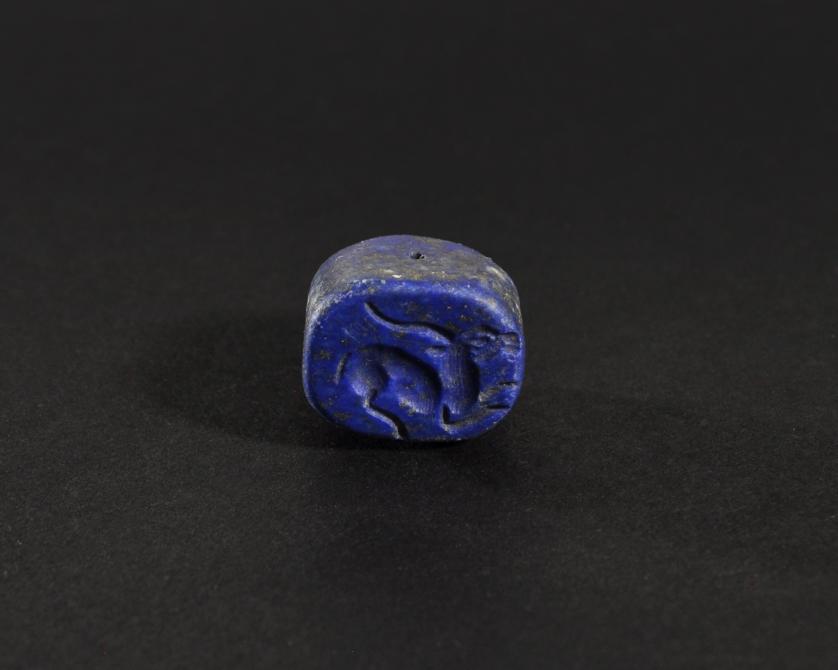 ARQUEOLOGÍA. PRÓXIMO ORIENTE. Imperio sasánida. Sello con representación de antílope a der. (ss. III-VII). Lapislázuli. Longitud 1,7 cm.