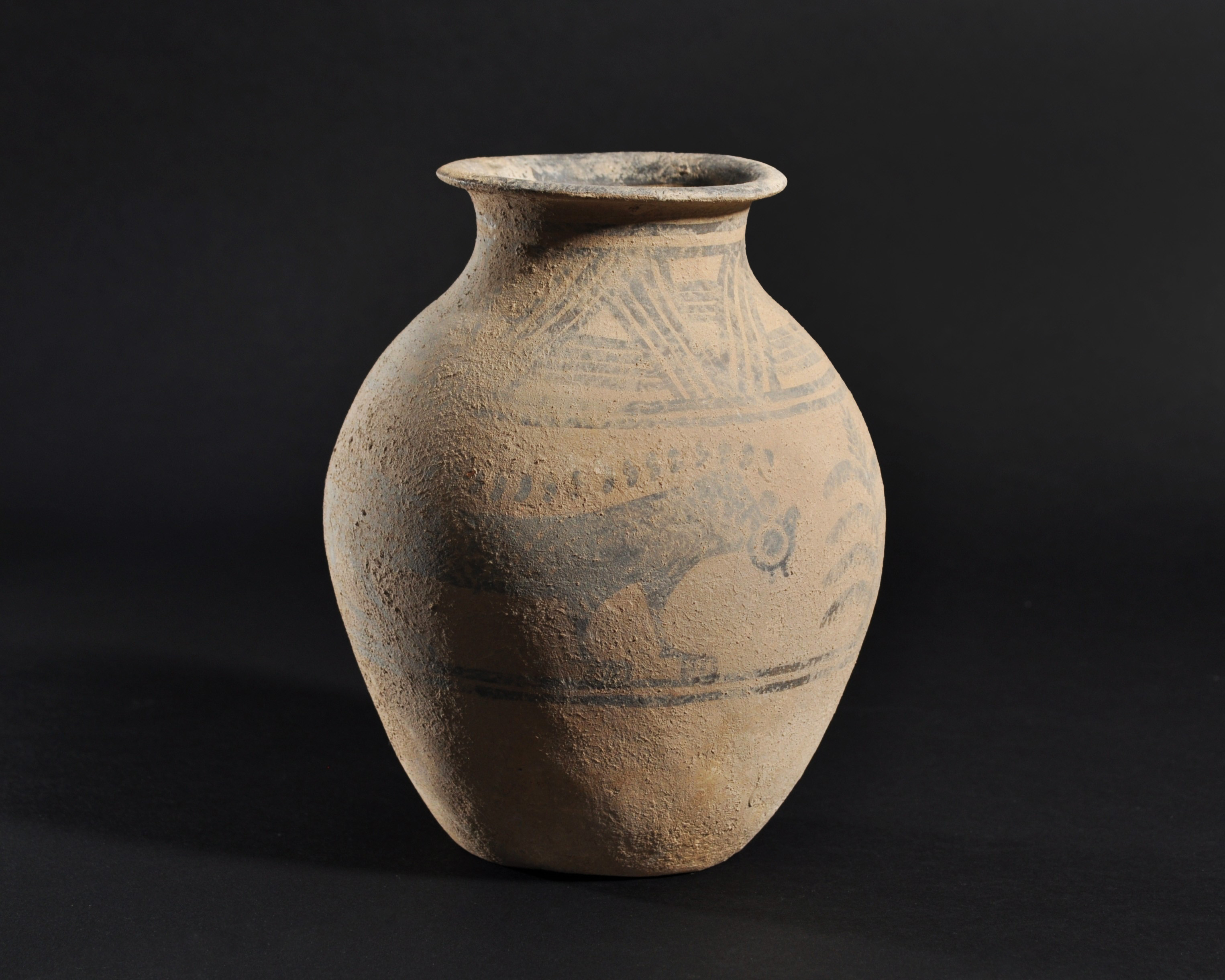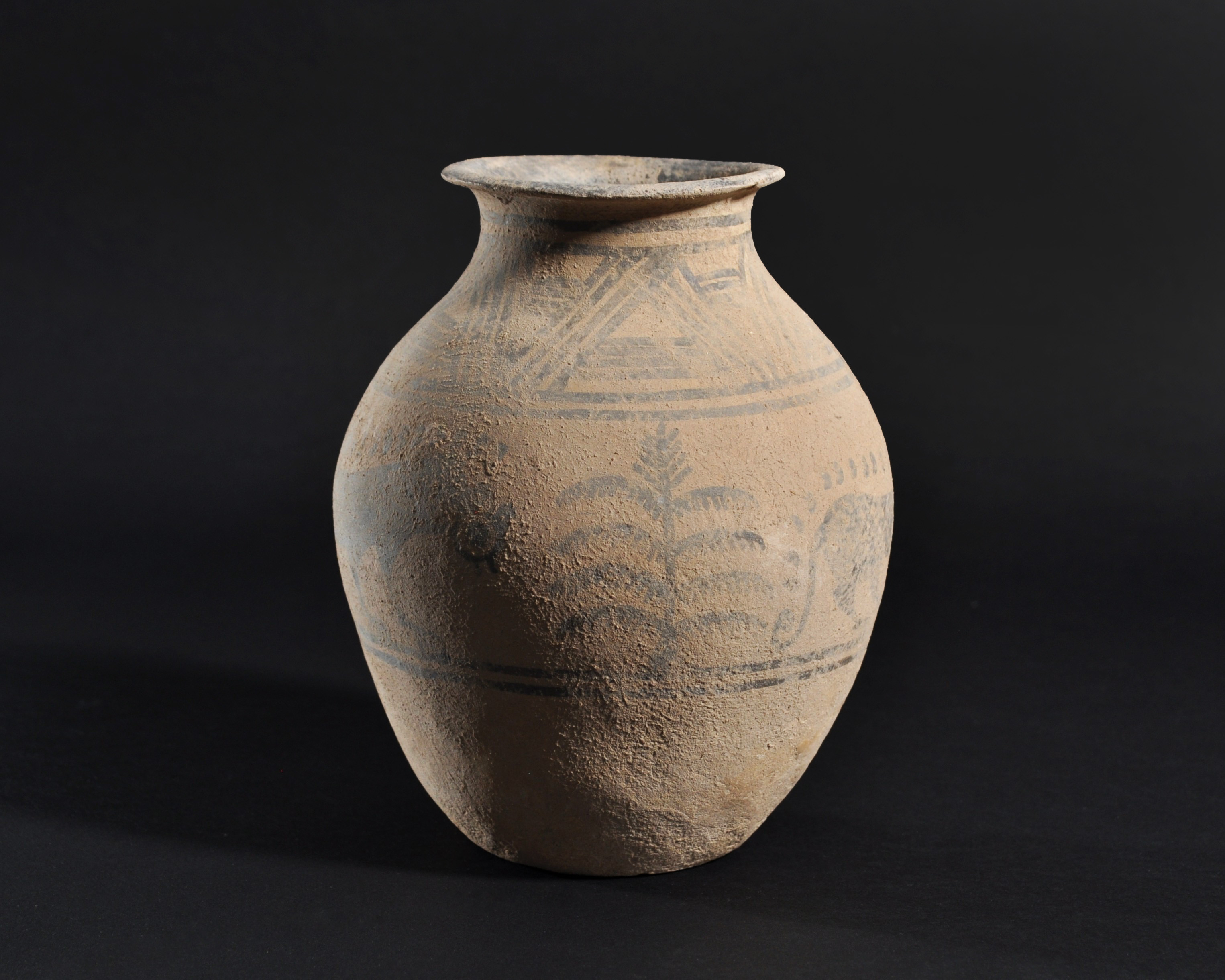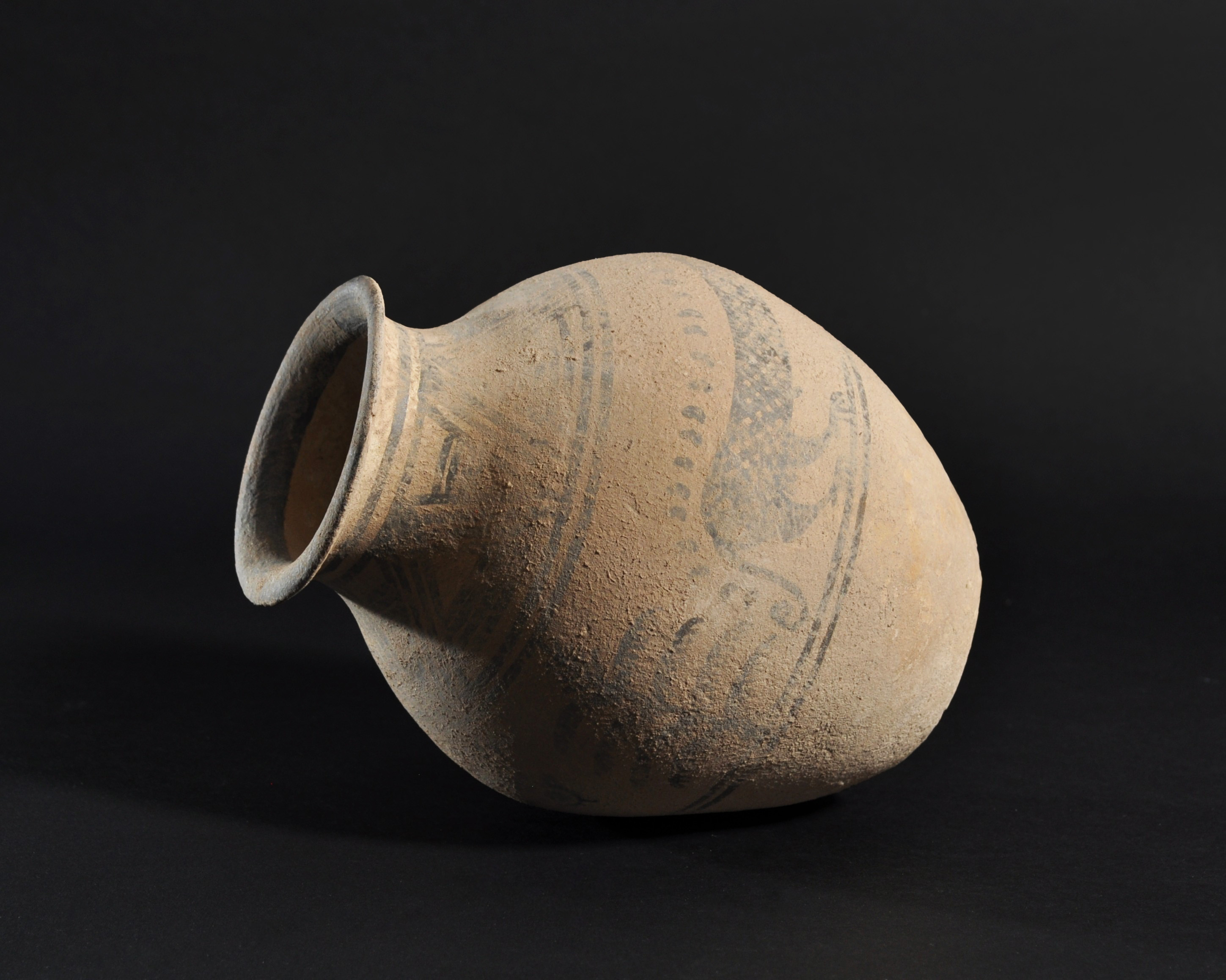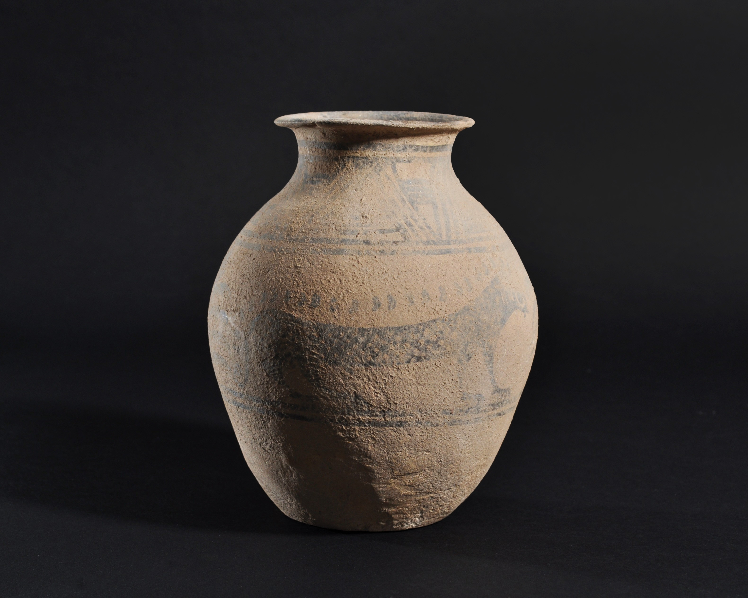 ARQUEOLOGÍA. MEDIO ORIENTE. Valle del Indo. Vasija con decoración geométrica y de cuadrúpedos entre árboles (III-II milenio a.C.). Cerámica. Altura 17,3 cm. Lote no exportable.