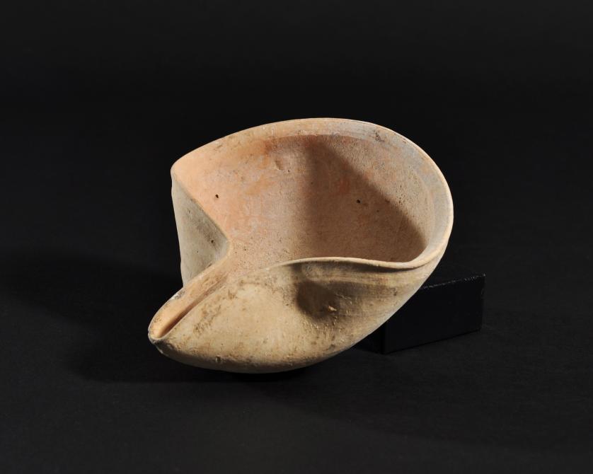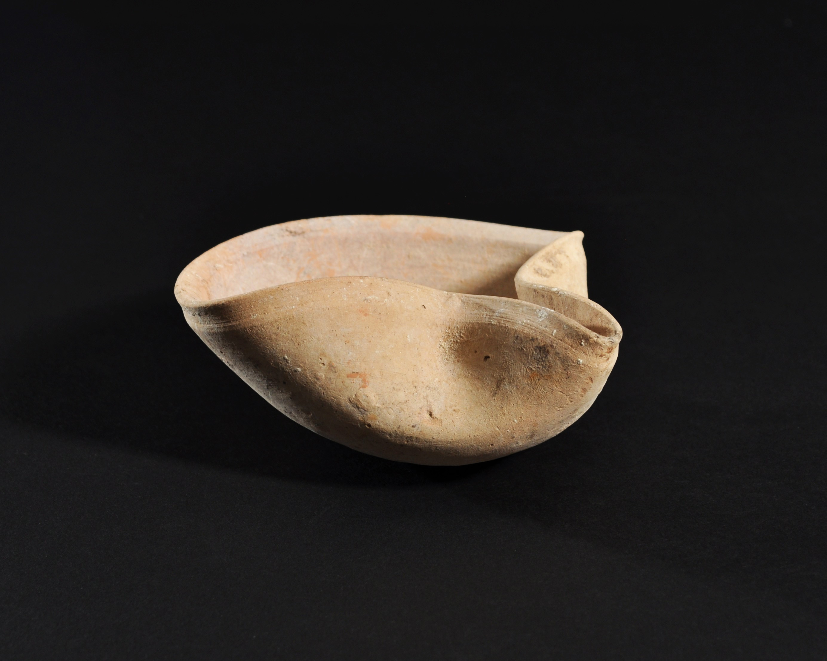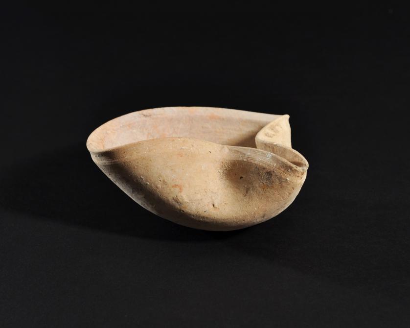 ARQUEOLOGÍA. CUENCA ORIENTAL DEL MEDITERRÁNEO. Lucerna en forma de platillo con una piquera (ss. VII-IV a.C.). Terracota. Longitud 11,3 cm. Lote no exportable.