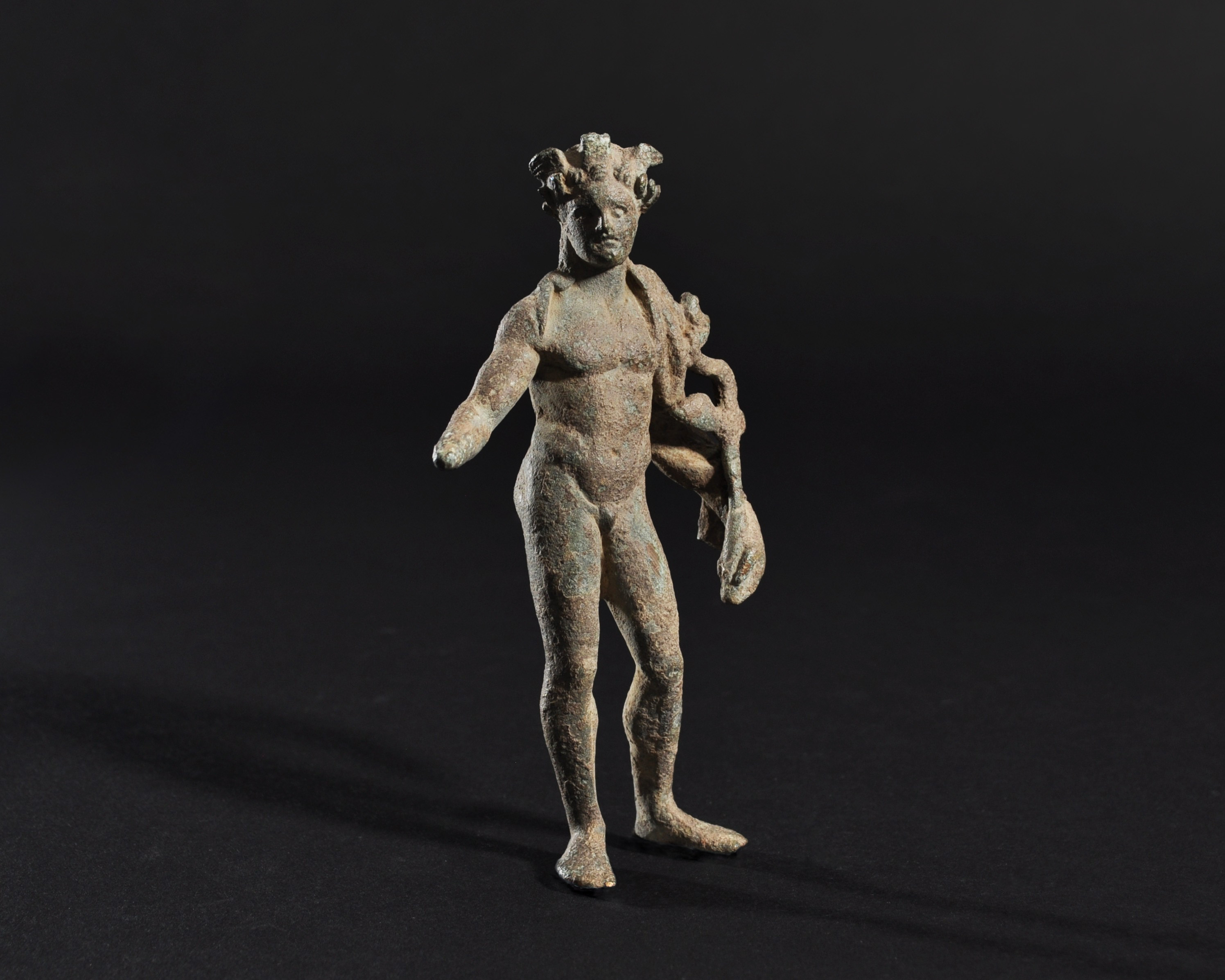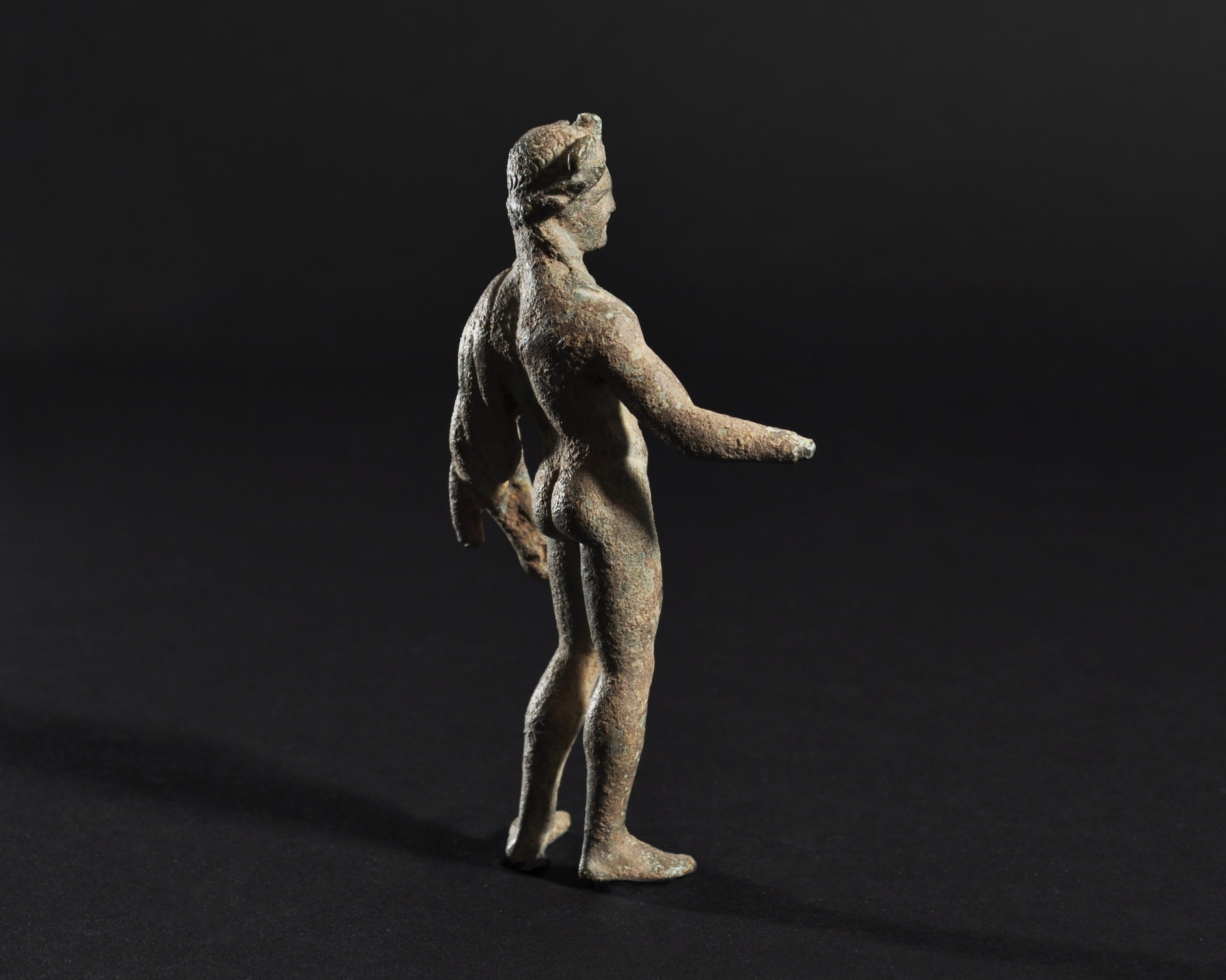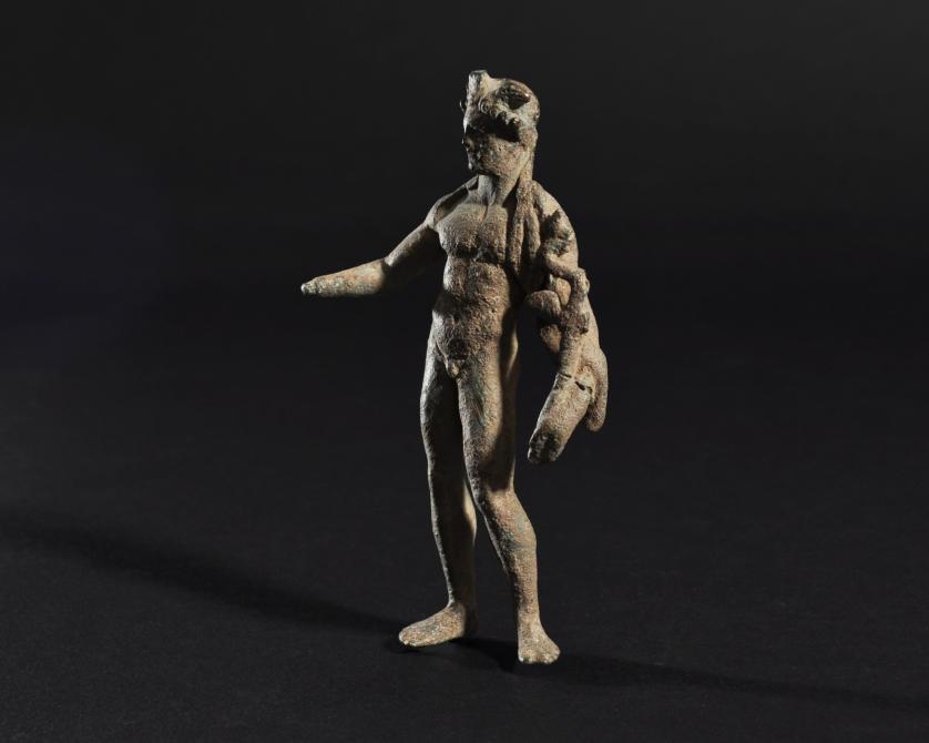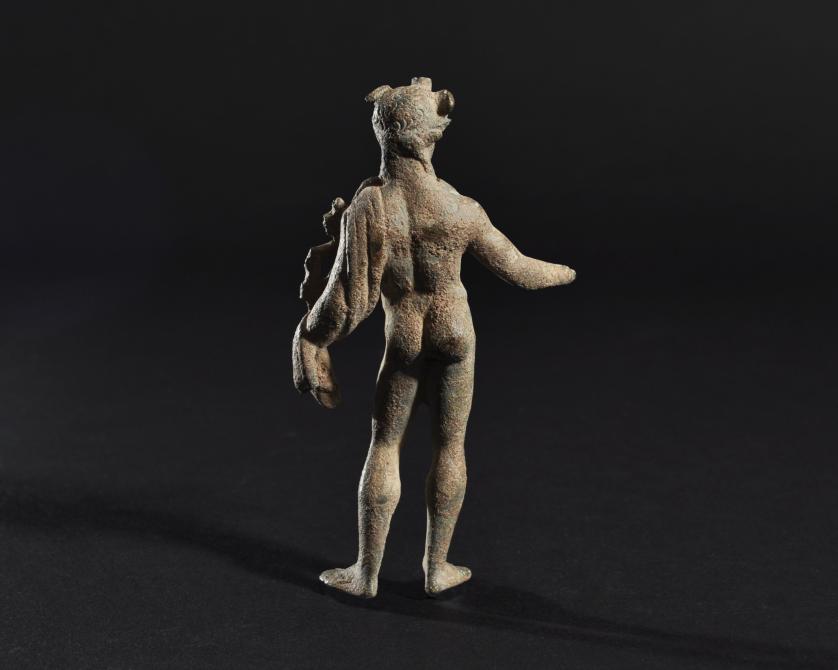 ARQUEOLOGÍA. ROMA. Figura de Mercurio (ss. I-IV d.C.). Bronce. Altura 12 cm. Fragmentado y restaurado en brazo izquierdo.