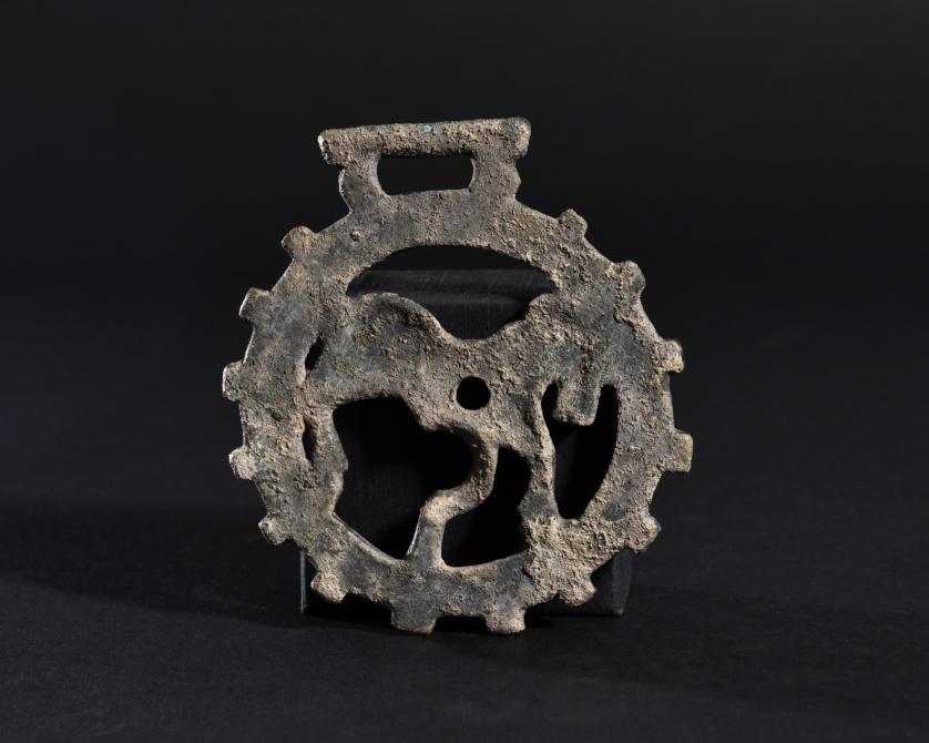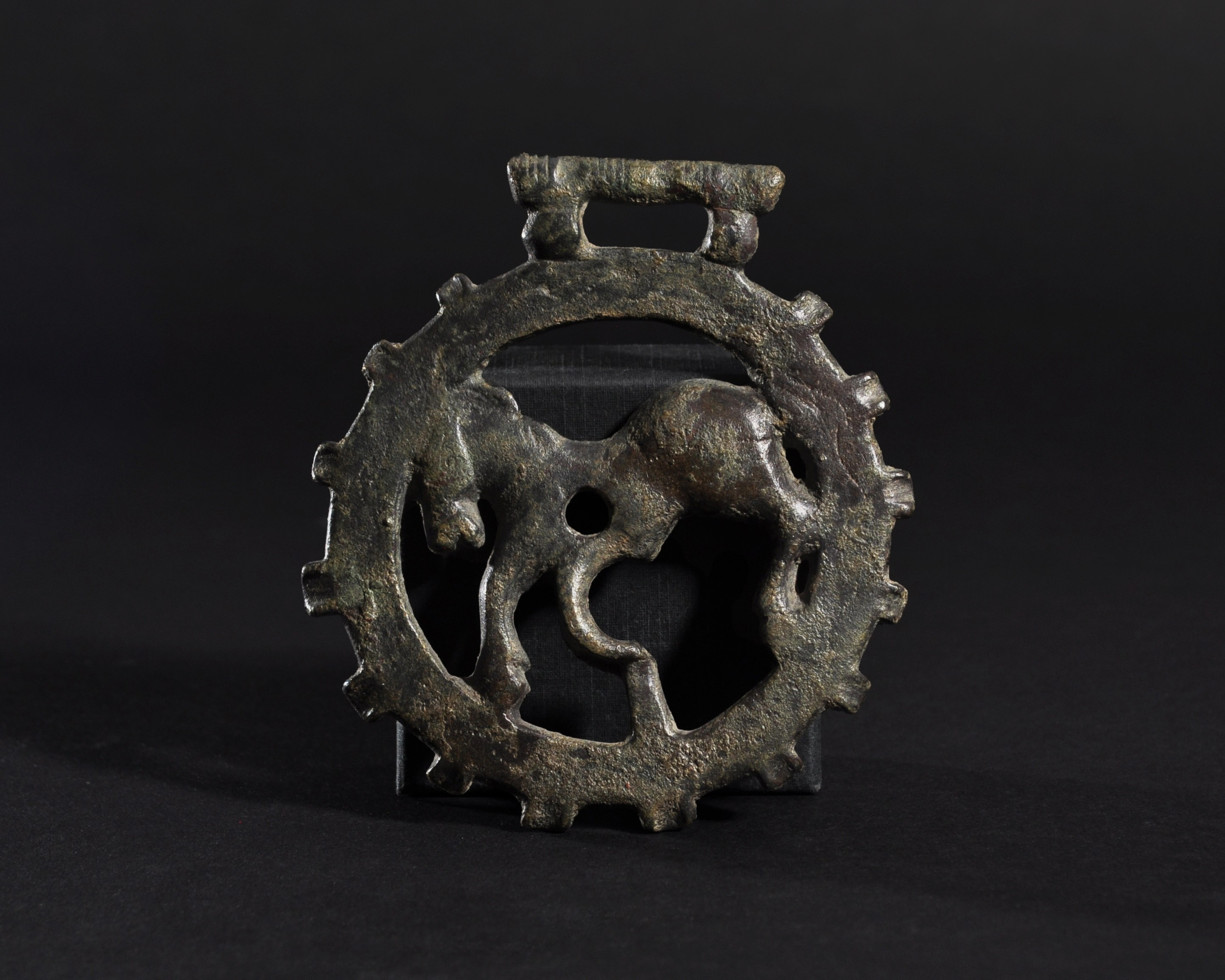 ARQUEOLOGÍA. ROMA. Cama de bocado de caballo con decoración de caballo (ss. III-IV d.C.). Bronce. Longitud 9,2 cm.