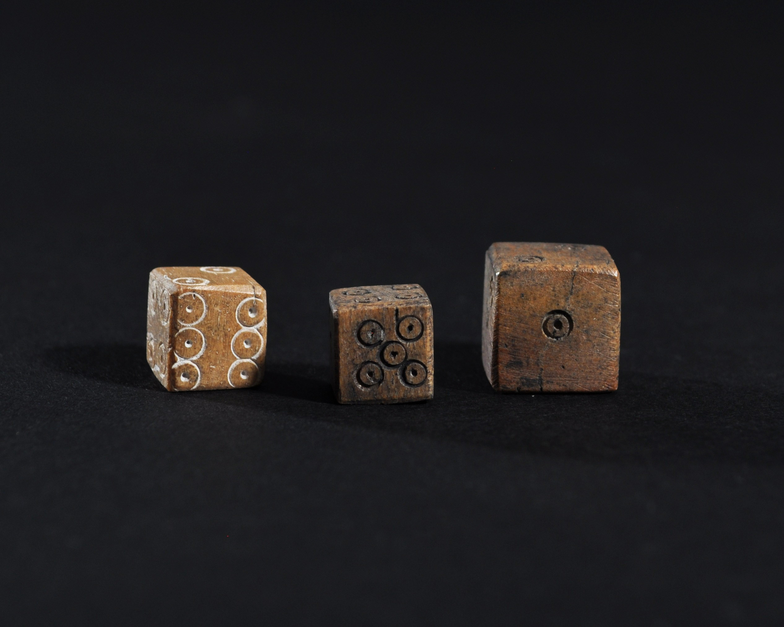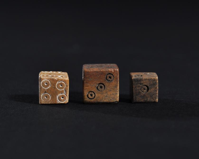 ARQUEOLOGÍA. ROMA. Lote de 3 dados (ss. I-IV d.C.). Longitud de 0,8 a 1,2 cm.