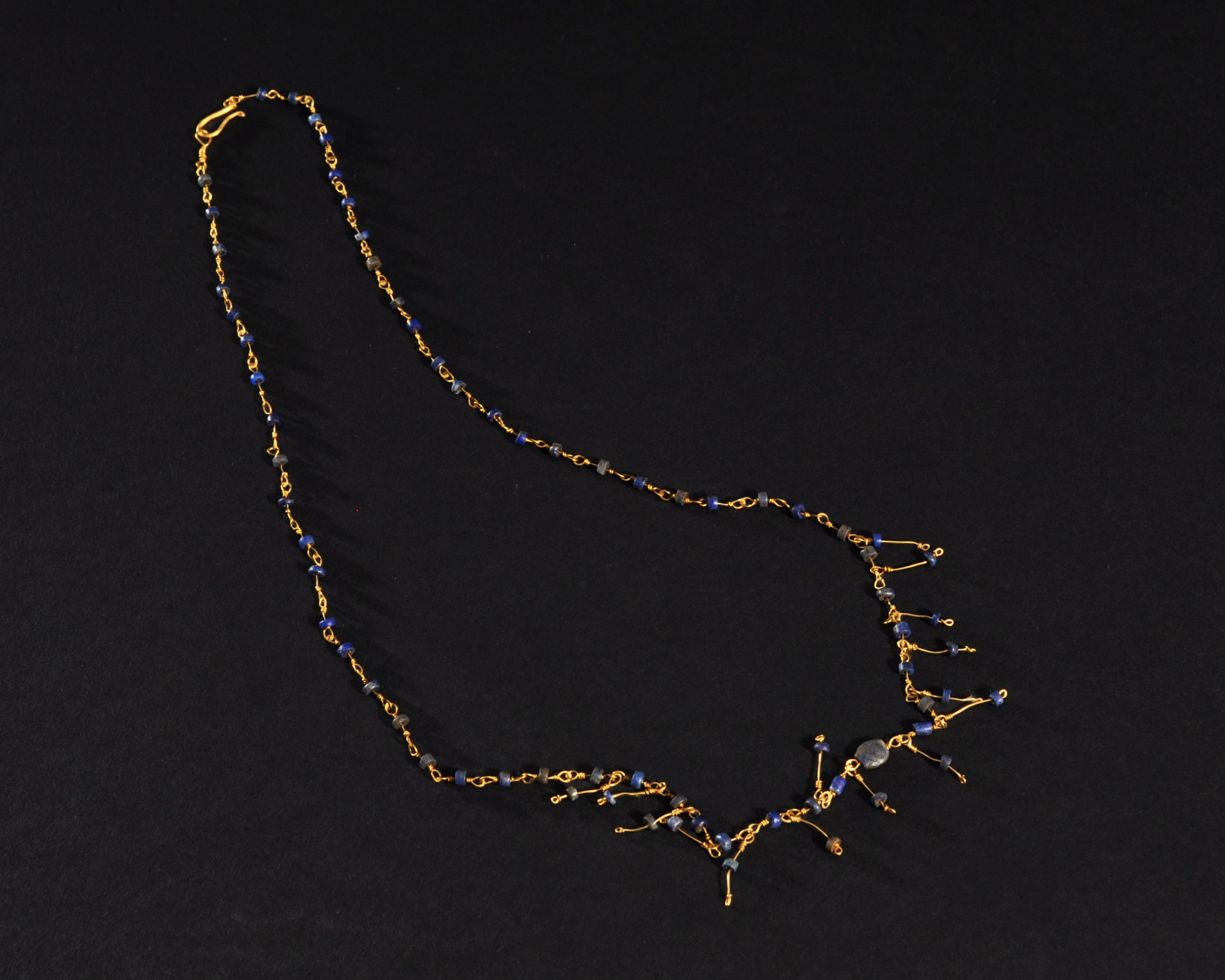 ARQUEOLOGÍA. ROMA. Collar (ss. I-IV d.C.). Oro y cuentas de vidrio. Longitud 52 cm. (extendido)