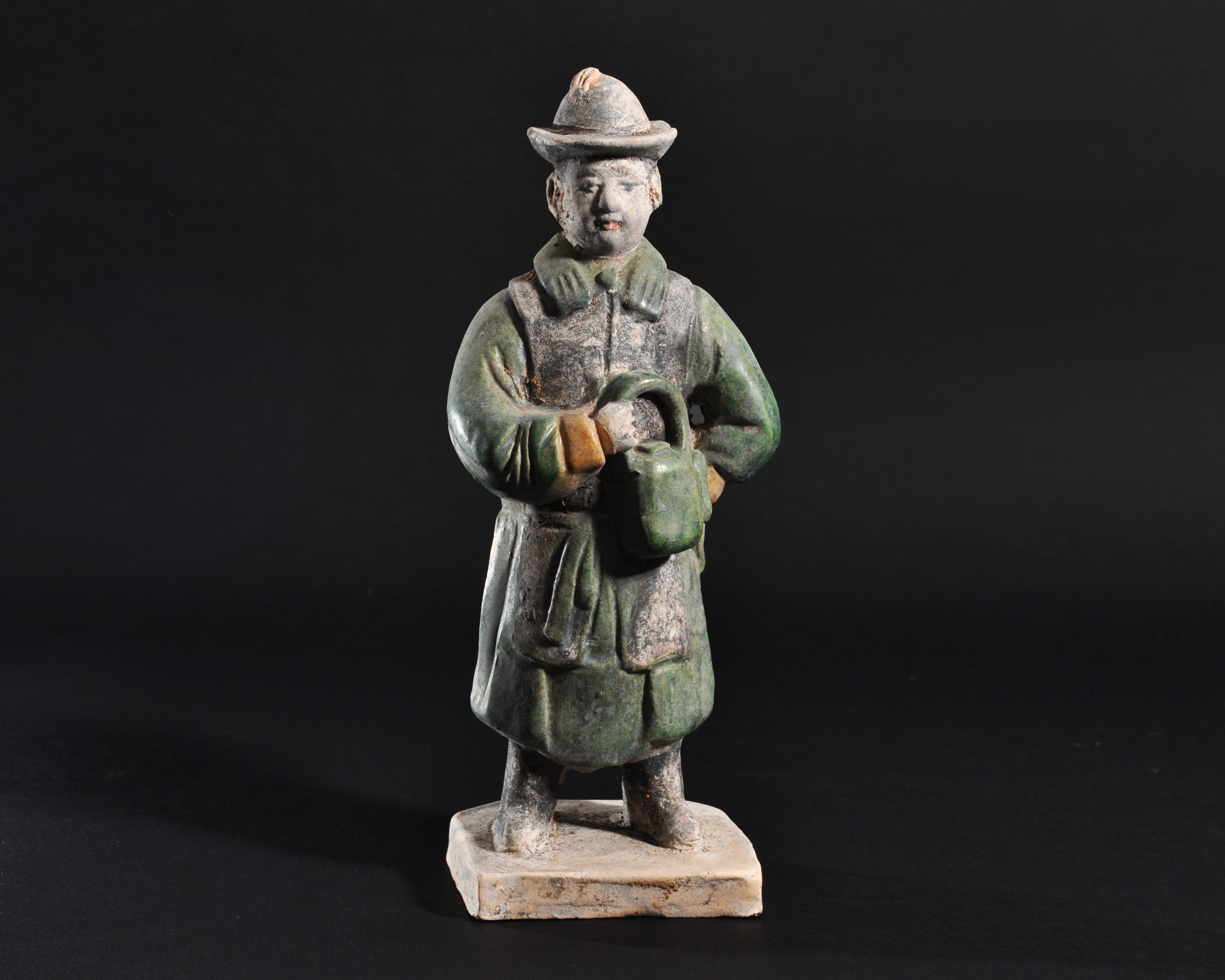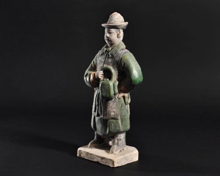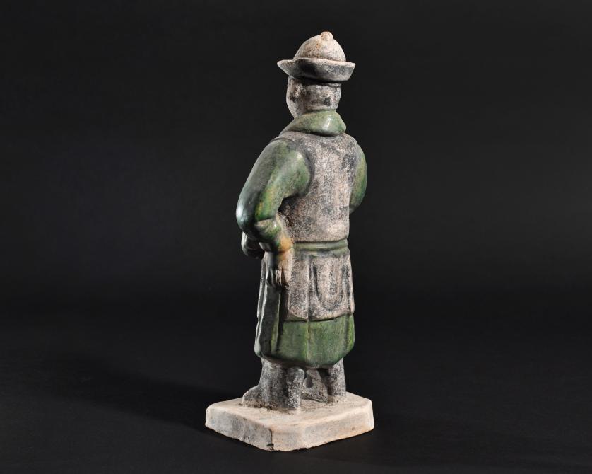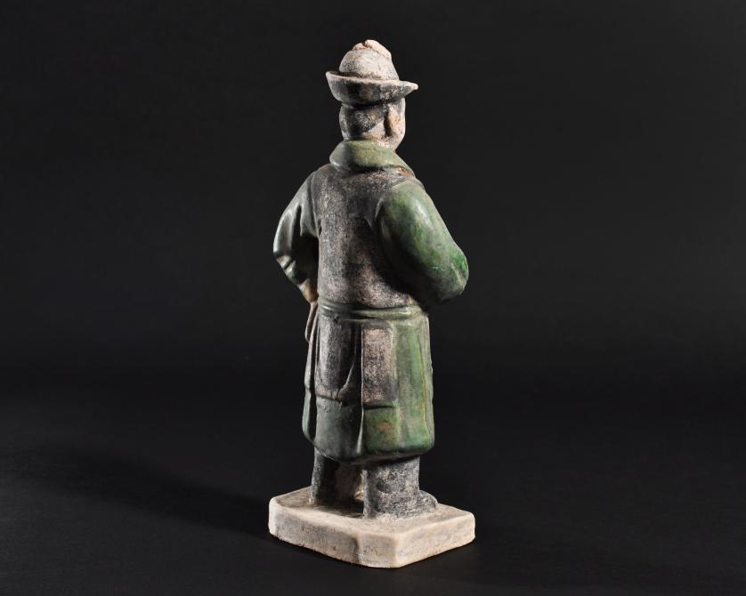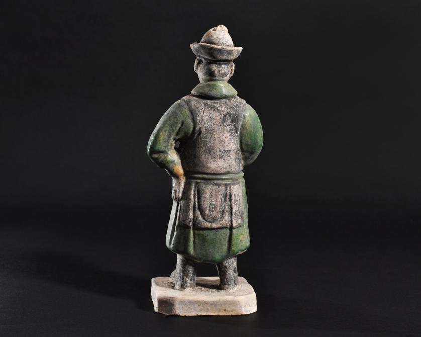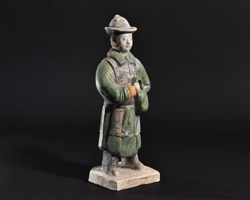 ARQUEOLOGÍA. CHINA. Dinastía Ming. Figura de cortejo (1368-1644). Terracota vidriada. Altura 23,6 cm.