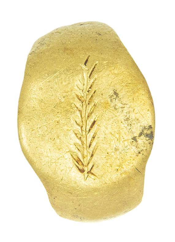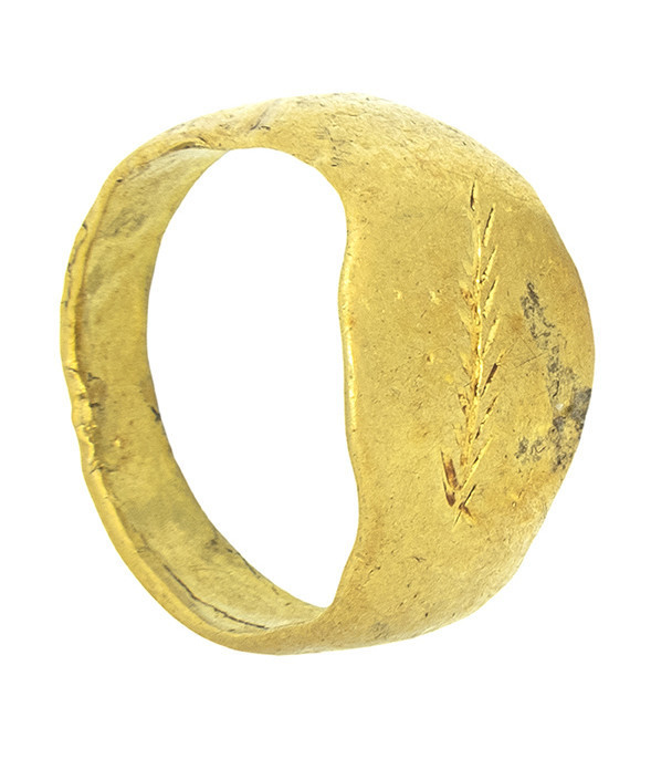 ARQUEOLOGÍA. ROMA. Anillo de aro liso y con una palma grabada en el sello (ss. I-II d.C.). Oro. Longitud 16,1 mm. Peso 3,75 gr.