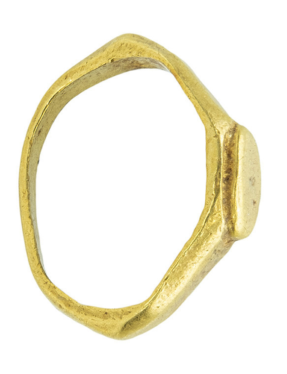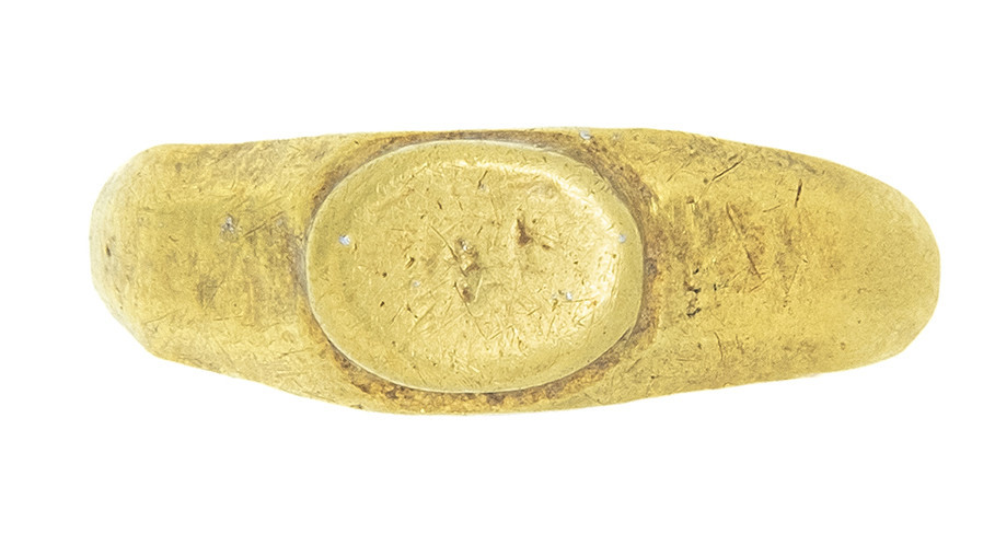 ARQUEOLOGÍA. ROMA. Anillo de hombros marcados y un chatón ovalado sin grabar (siglo III d.C. o posterior). Oro. Longitud 21,6 mm. Peso 5,23 gr.