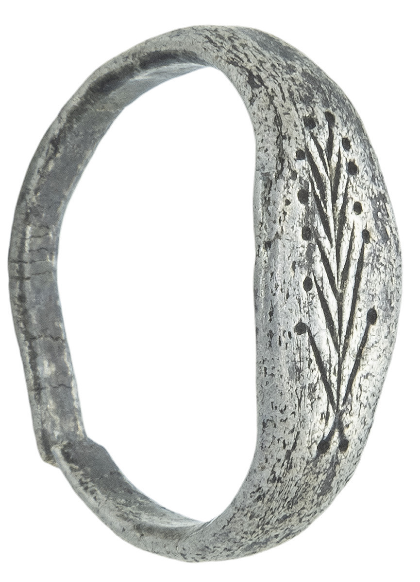 ARQUEOLOGÍA. ROMA. Anillo con grabado de una palma (ss. III-IV d.C.). Plata. Longitud 19,3 mm. Peso 2,51 gr.