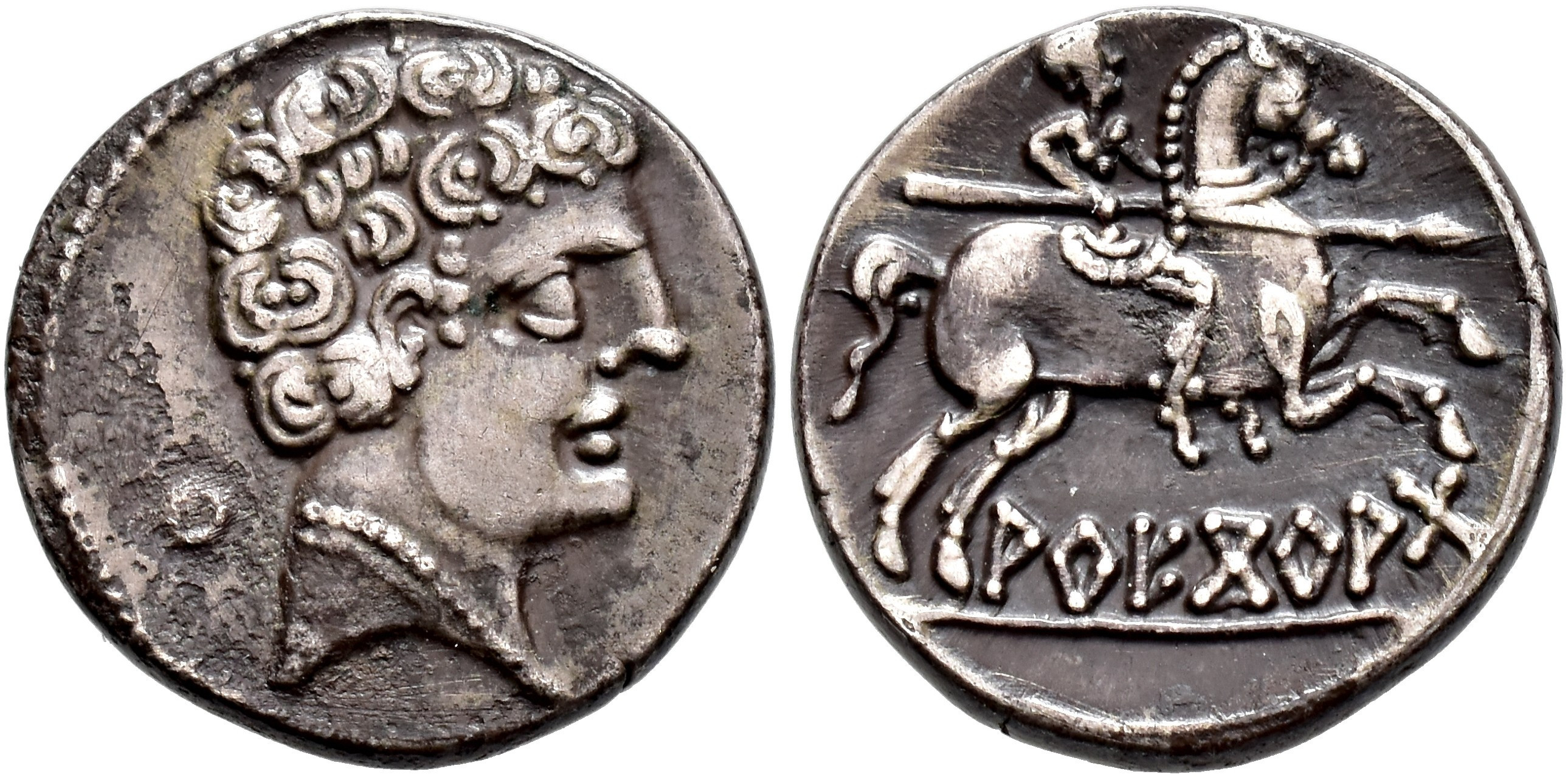 HISPANIA ANTIGUA. AREKORATA. Denario. A/ Cabeza masculina con collar a der., detrás Ku. R/ Jinete lancero a der. con dos pies visibles, debajo, sobre línea, AREKoRATa. AR 3,9 g. 17,3 mm. I-113; ACIP-1774. Erosiones en anv. MBC+.