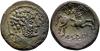 HISPANIA ANTIGUA. ARSAOS. Unidad. A/ Cabeza masculina barbada y con collar a der., delante delfín, detrás arado. R/ Jinete con hacha de guerra a der., debajo sobre línea ARSAOS. AE 11,8 g. 25,4 mm. I-144; ACIP-1642. Pátina verde con pequeñas erosiones. EBC-/MBC+. Muy escasa.