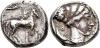 GRECIA ANTIGUA. SICILIA. Siracusa. Tetradracma. I República (465-425 a.C.). A/ Biga a der. con Niké coronando los caballos. R/ Cabeza de Aretusa a der. rodeada por delfines; SURAK(OS)IO(N). AR 17,36 g. 22,2 mm. COP-660. Rayas en rev. MBC-/MBC.