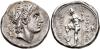 GRECIA ANTIGUA. MACEDONIA. Demetrio. Tetradracma (306-283 a.C.). A/ Cabeza diademada y con cuernos a der. R/ Poseidón a izq. con tridente y pie sobre roca, en campo a izq. y der. monogramas. AR 16,91 g. 28,8 mm. COP-1177, var. monograma. MBC.