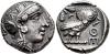 GRECIA ANTIGUA. ÁTICA. Atenas. Tetradracma (454-404 a.C.). A/ Cabeza de Atenea a der. R/ Lechuza a der. mirando de frente; detrás creciente y rama de olivo, delante ley. griega AQE, todo dentro de cuadrado incuso. AR 17,13 g. 24,3 mm. COP-31 ss.; SBG-2526. MBC.