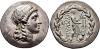 GRECIA ANTIGUA. EÓLIDA. Myrina. Tetradracma (s. II a.C.). A/ Cabeza de Apolo a der. R/ Apolo avanzando a der. con pátera y ramas de laurel, delante ónfalos y ánfora, a izq. monograma; MYRINAIWN, todo dentro de láurea. AR 16,63 g. 31,7 mm. COP-221, var. monograma. Leve vano en rev. EBC-.