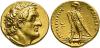 El Egipto ptolemaico fue sin duda uno de los reinos más poderosos y ricos de los creados tras la muerte de Alejandro y como especificidad decidió usar en su sistema monetario el llamado peso fenicio (o ptolemaico), bastante más ligero que el peso ático, el más común en el mundo helenístico. El primer monarca, Ptolomeo Soter, tras tomar formalmente el título real (305), ordenó acuñar la mayor moneda de oro conocida hasta entonces, el trychrison, cuyo peso equivalía a cinco dracmas egipcias, por lo cual se le conoció como pentadracma de oro, teniendo un valor de cambio de 60 dracmas de plata egipcias, una gran suma para la época. Sus tipos eran la cabeza del rey con aegis al cuello y en reverso el águila sosteniendo en sus garras el haz de rayos, símbolo de Zeus. Su hijo y sucesor, Ptolomeo II Filadelfo, que fue asociado al trono en 284 y gobernó en solitario de 282 a 246, mantuvo la acuñación de estas piezas sin cambios, es decir mantuvo el retrato de su fallecido padre en ellas hasta que dejó de acuñarlas hacia el 272, mientras en el reverso aparecía su título real. Estas piezas fueron sin duda una muestra del poder económico y político de Egipto, así como de su especificidad monetaria.