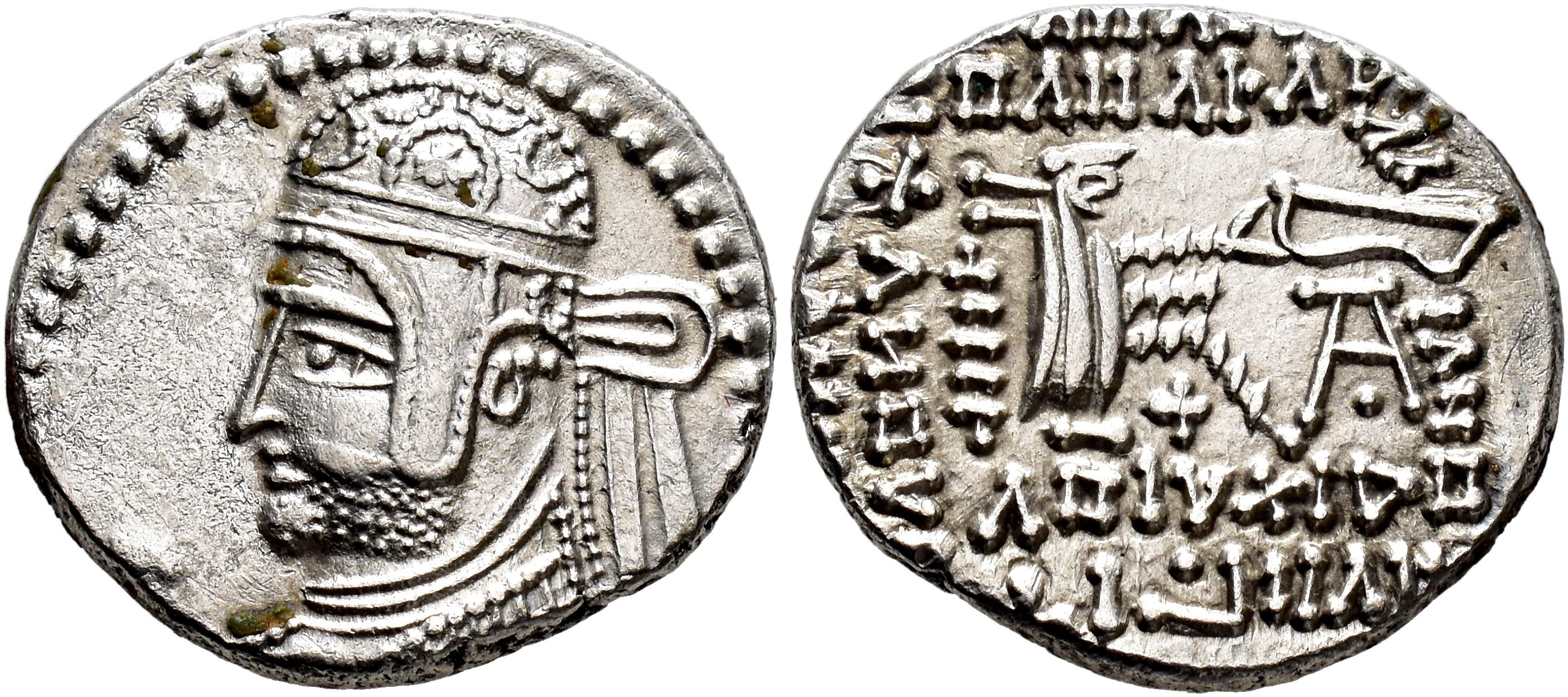 GRECIA ANTIGUA. IMPERIO PARTO. Partamaspates. Ecbatana. Dracma (c. 116 a.C.). A/ Busto con tiara a izq. R/ Arquero sentado a der. AR 3,61 g. 17,1 mm. SPP-81.1. EBC.