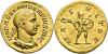IMPERIO ROMANO. ALEJANDRO SEVERO (222-235). Áureo. Roma (231-235). A/ Busto laureado, drapeado y acorazado a der.; IMP ALEXANDER PIVS AVG. R/ Marte avanzando a der. con escudo y lanza; MARS VLTOR. AU 6,4 g. 21,1 mm. RIC-245d; Cal.-3073. EBC. Escasa.