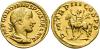 IMPERIO ROMANO. GORDIANO III (238-244). Áureo. Roma (240). A/ Busto laureado, drapeado y acorazado a der.; IMP GORDIANVS PIVS FEL AVG. R/ Gordiano en traje militar a caballo a izq.; P M TR P III COS P P. AU 5,18 g. 17,9 mm. RIC-80; Cal.-3220. EBC-/MBC+.