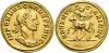 IMPERIO ROMANO. CARO (282-283). Áureo. Roma. A/ Busto laureado, drapeado y acorazado a der.; IMP C M AVR CARVS P F AVG. R/ Caro en traje militar a caballo a izq.; ADVENTVS CARI AVG. AU 4,98 g. 18,4 mm. RIC-no; Cal.-4260. Pequeñas marcas. MBC/MBC+. Rarísima.