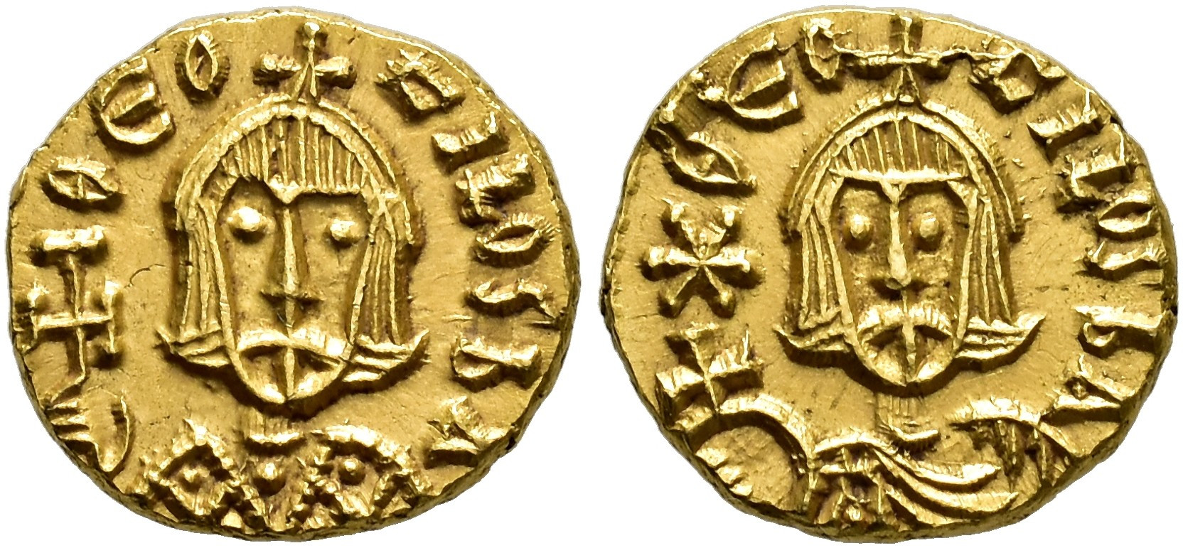 IMPERIO BIZANTINO. TEÓFILO (820-829). Semissis. Siracusa. A/ Busto frontal con globo crucífero. R/ Busto frontal con globo crucífero. AU 1,28 g. 10,4 mm. SBB-1676. EBC.
