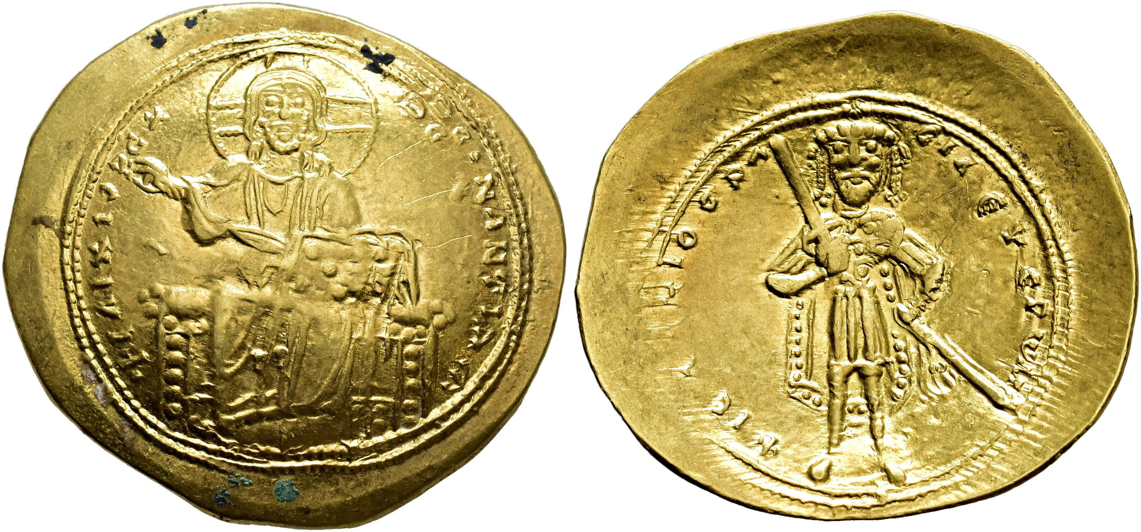 IMPERIO BIZANTINO. ISAAC I COMNENO (1057-1059). Histamenon nomisma. Constantinopolis. A/ Cristo en majestad. R/ El emperador de frente en traje militar con espada. AU 4,42 g. 24,1 mm. SBB-1843. Grafitos. R.B.O. MBC+.