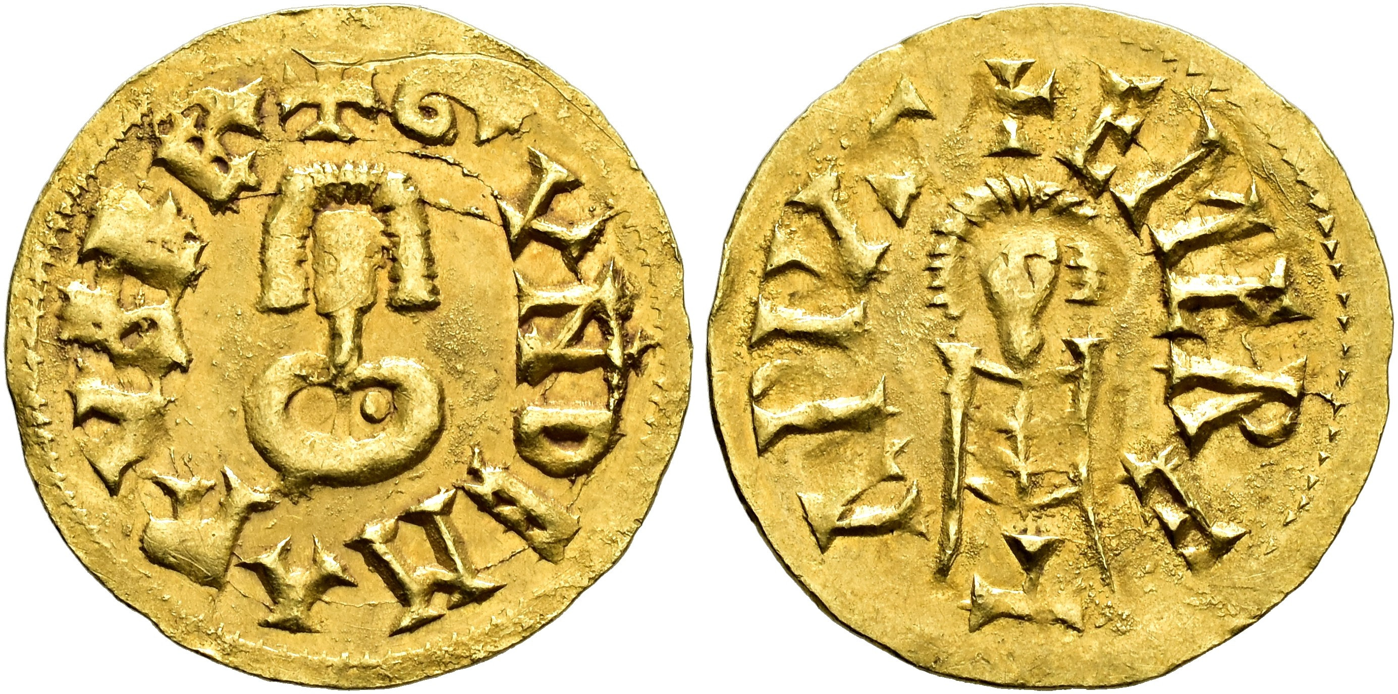 REYES VISIGODOS. GUNDEMARO. Tremissis. Emerita. AU 1,47 g. 18,8 mm. CNV-203. MBC-/MBC. Rara.