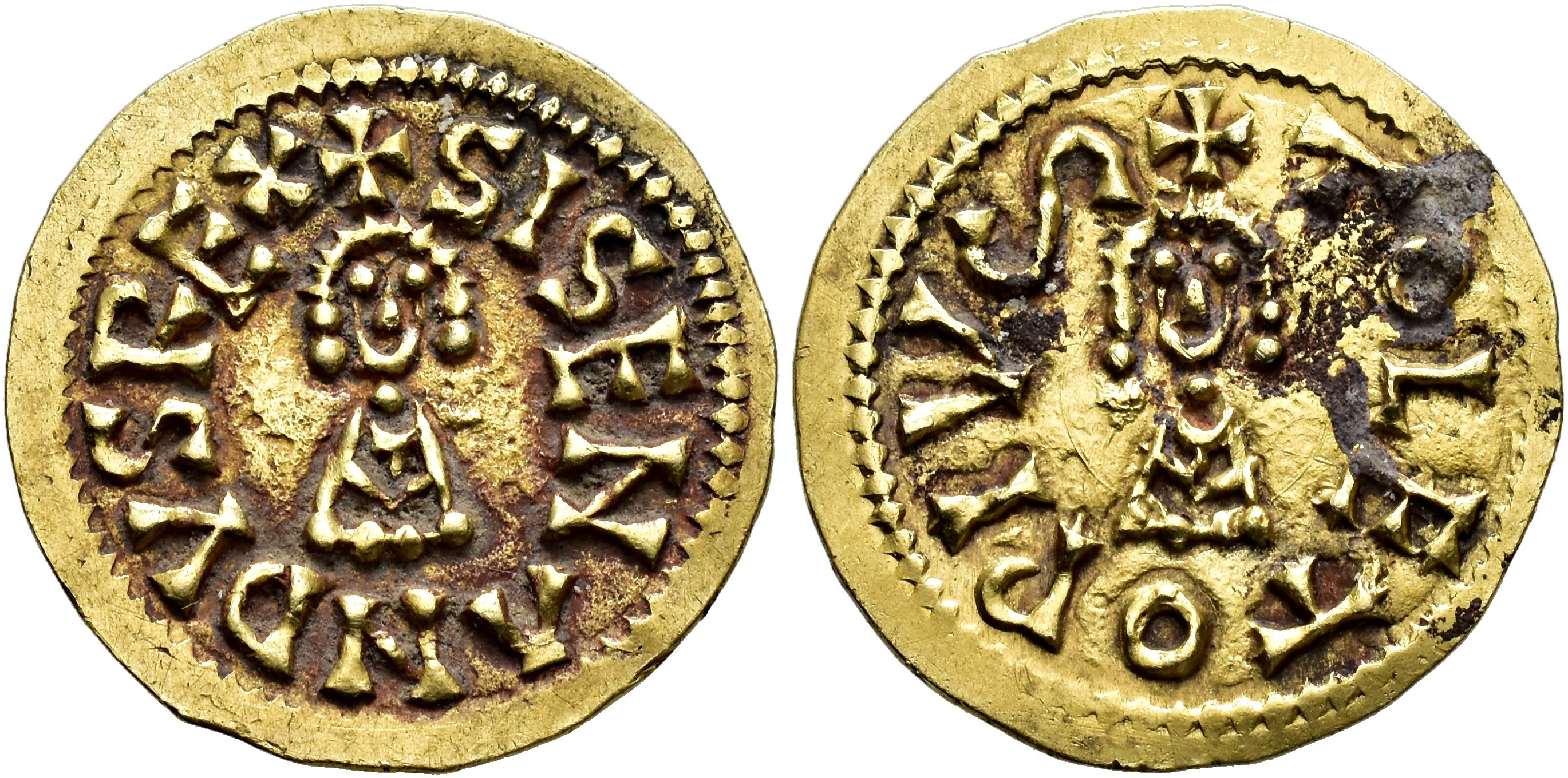 REYES VISIGODOS. SISENANDO. Tremissis. Toleto. AU 1,48 g. 18,8 mm. CNV-354. Aderencias. MBC.